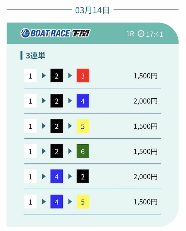 | ①-②-⑤ | 27.4倍 | 800円 |