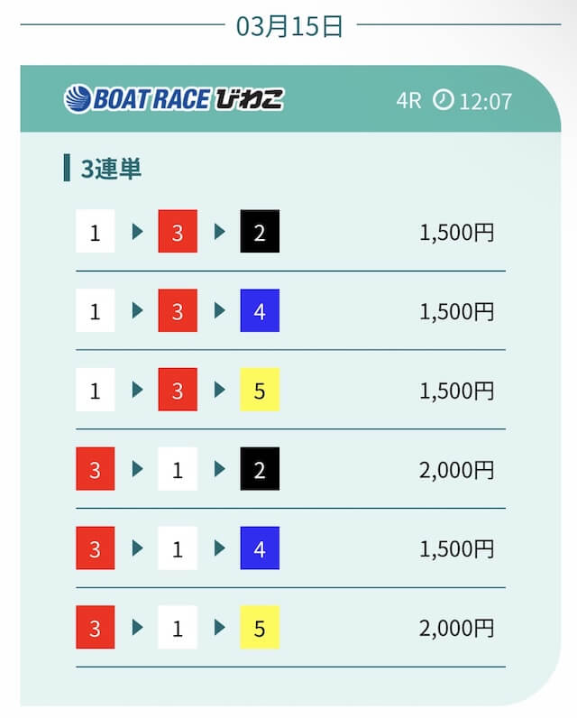 | ①-③-⑥ | 24.6倍 | 800円 |