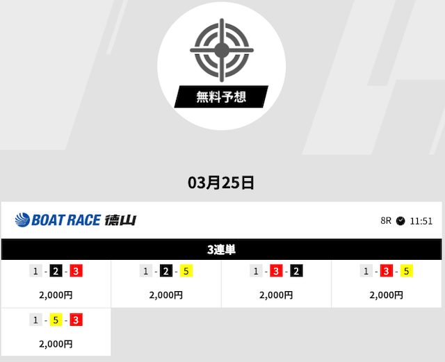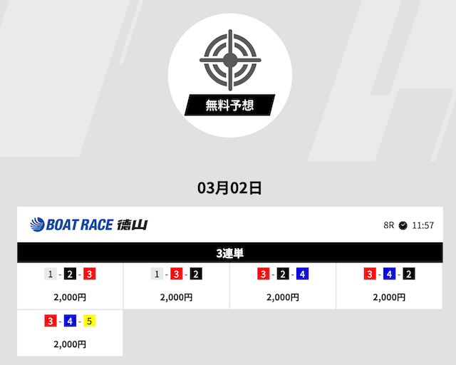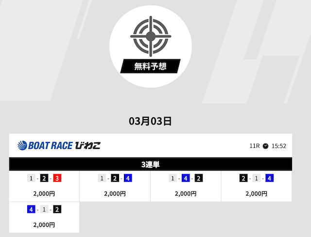 ふうかこの手のサイトは、当たらないと思っていましたが実際は違いましたw10戦9勝してて文句無しの戦績です!次は有料プランにもチャレンジをしてみようと思います。投稿日:2026/03/02