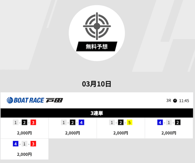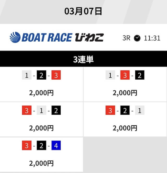 - 推奨舟券代:10,000円(1点1,000円~2,000円)