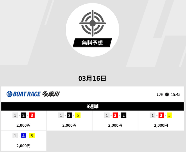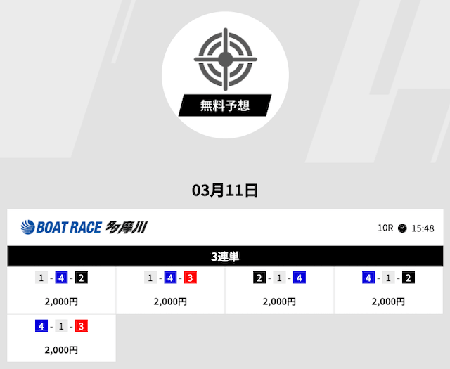 まずは、無料予想で有料予想に参加するための軍資金作りからスタート!無料予想では、回収率が最も高かった多摩川に絞って参加するようにして下さい!同会場で勝負することで、効率的に資金を増やせるはずです。