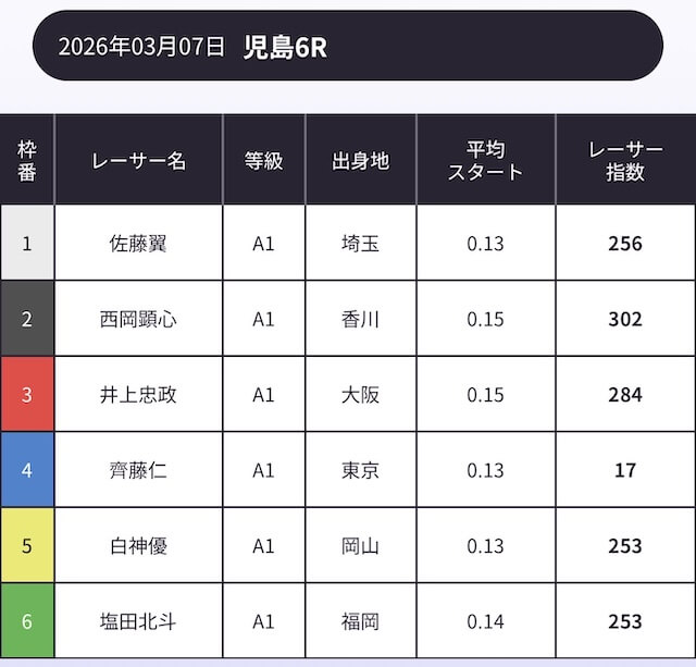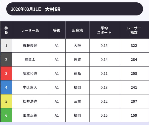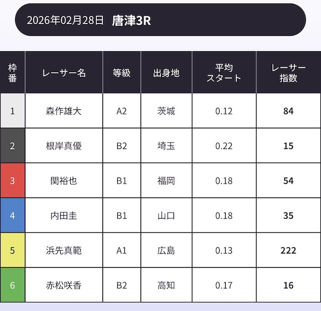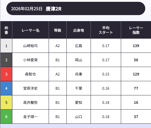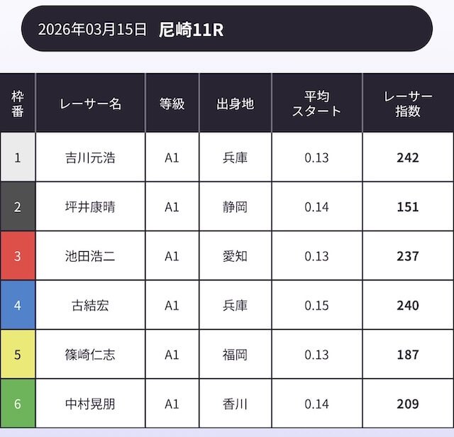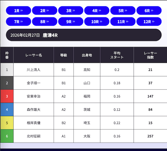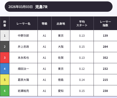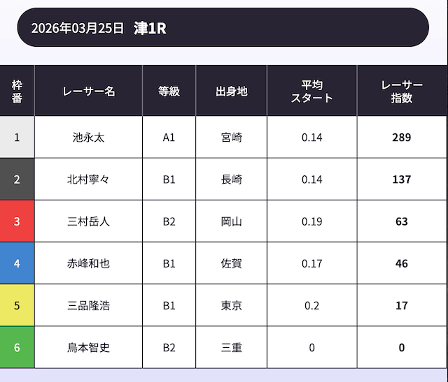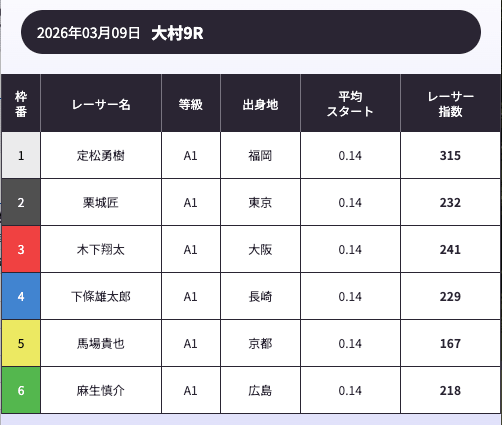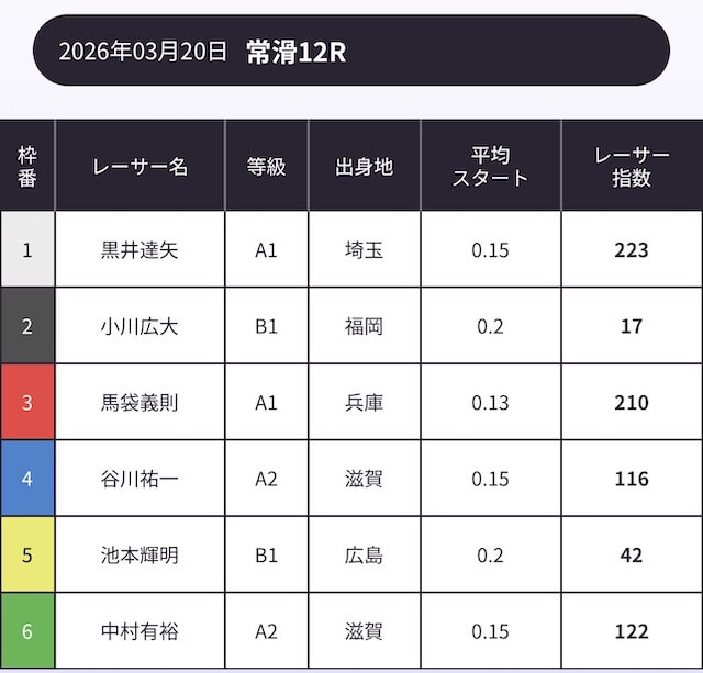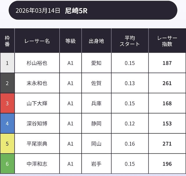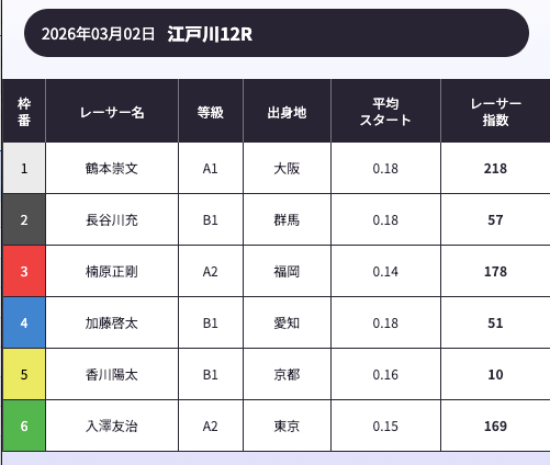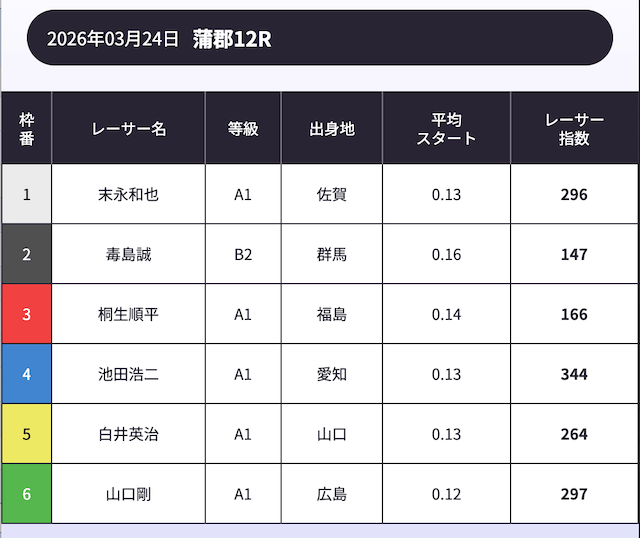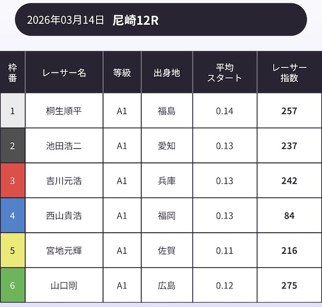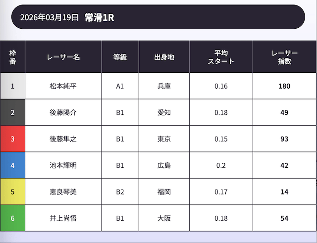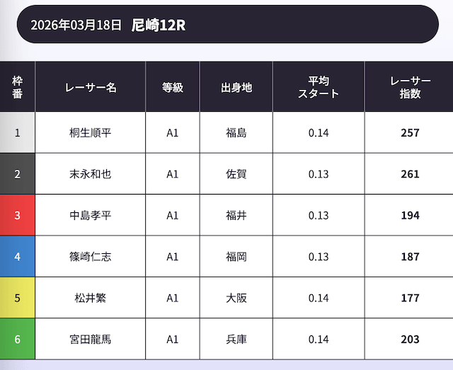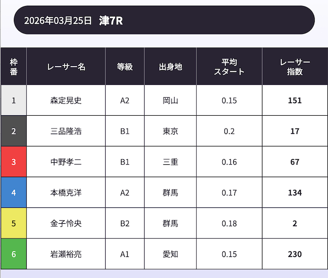「AI解析レーサー指数」という、スキル・クセ・会場適正等を踏まえて、各選手の強さを数値化したコンテンツが存在します。
