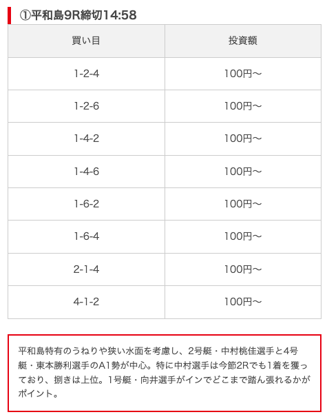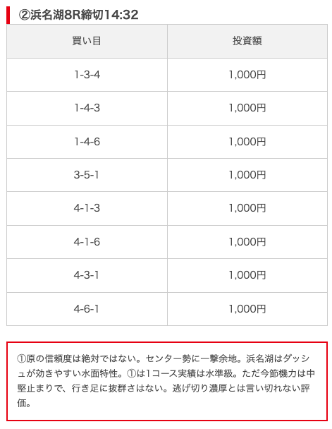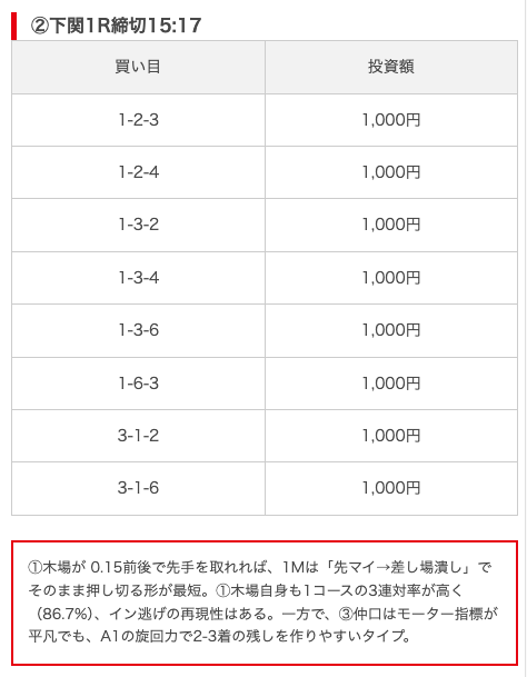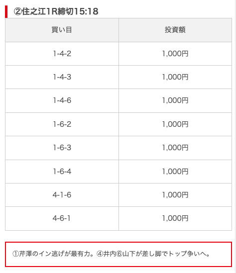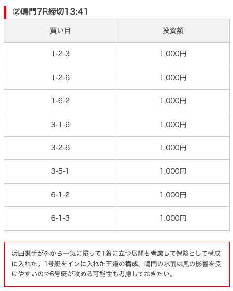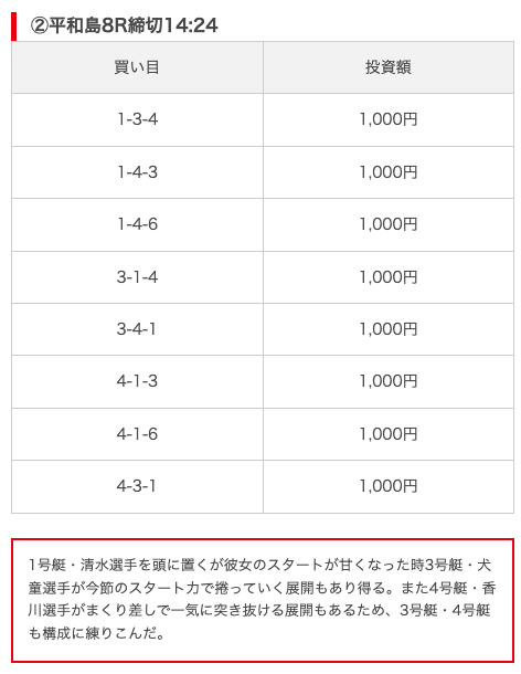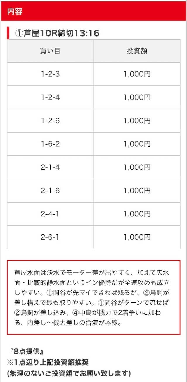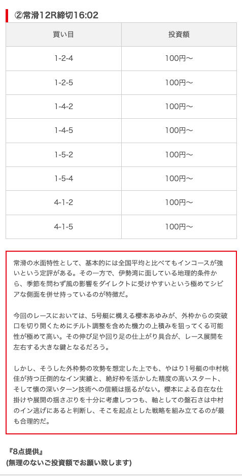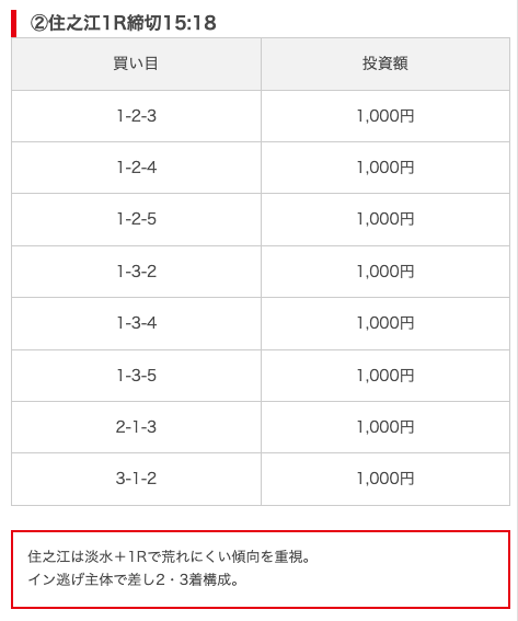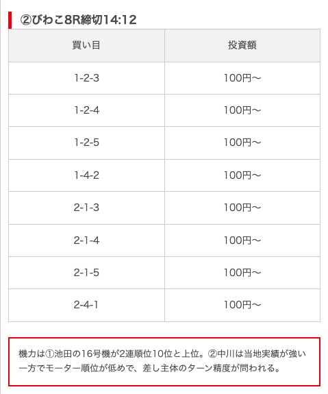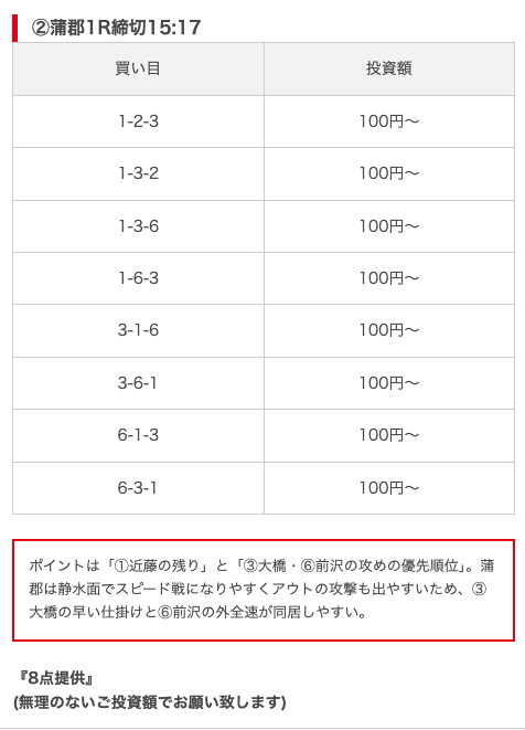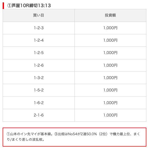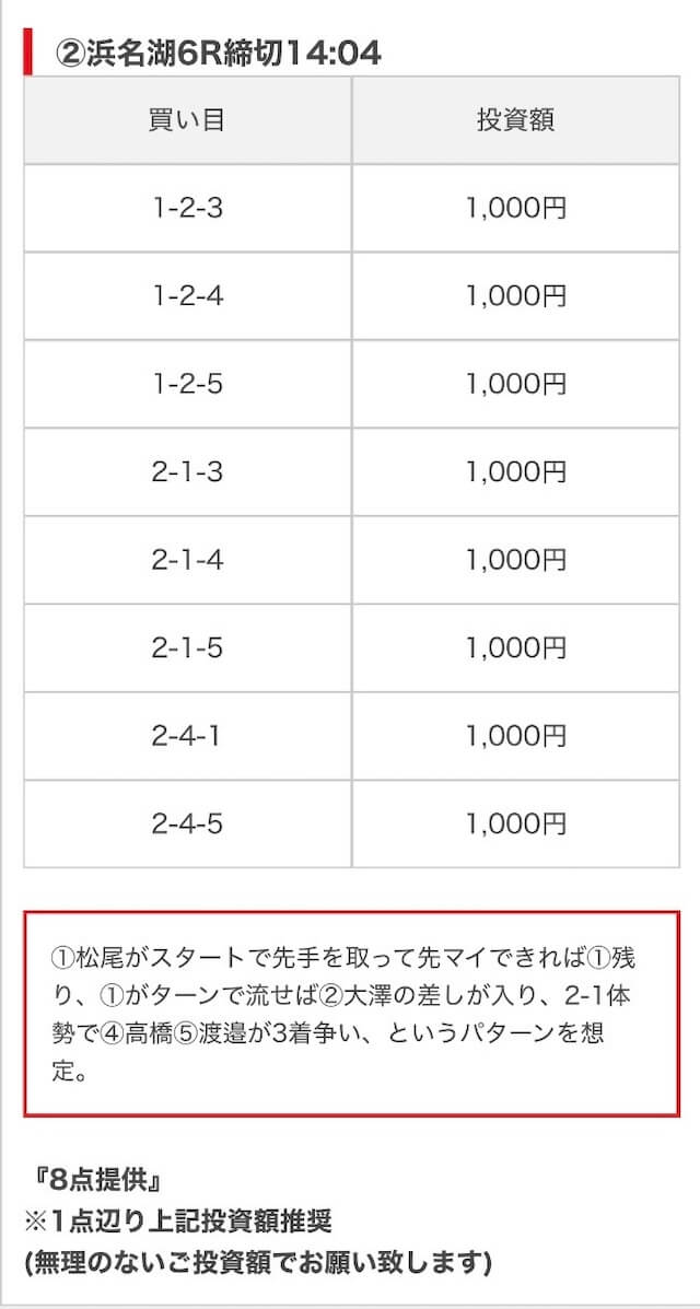 - 推奨舟券代:8,000円(1点1,000円)