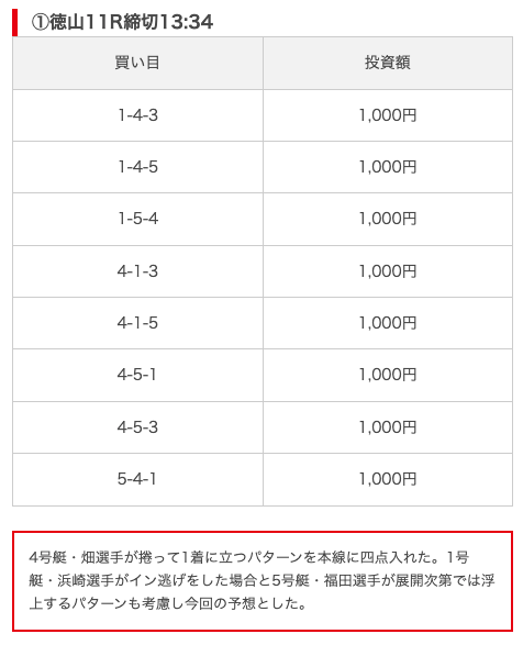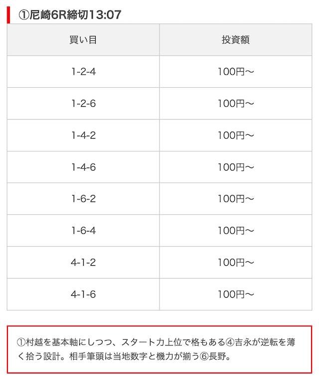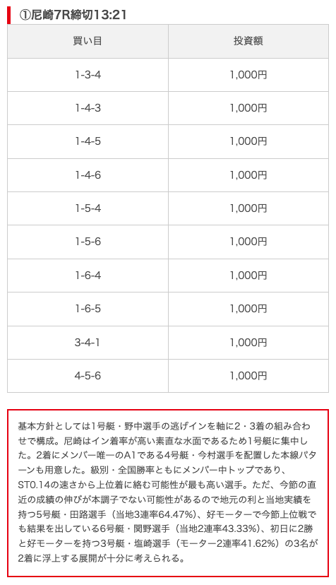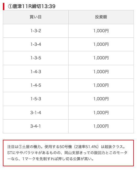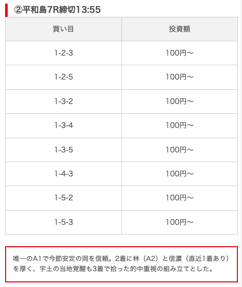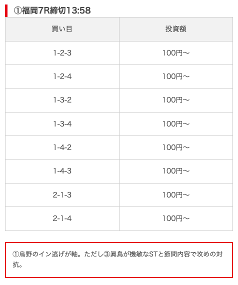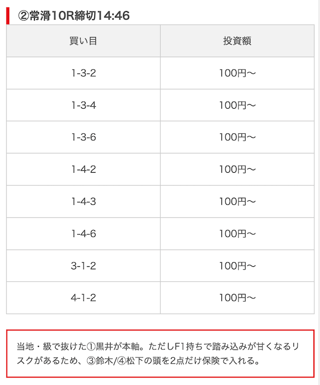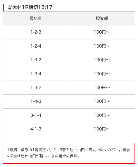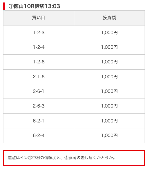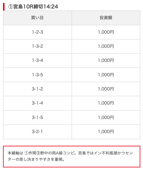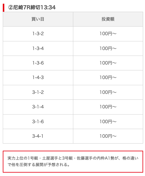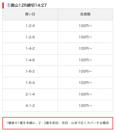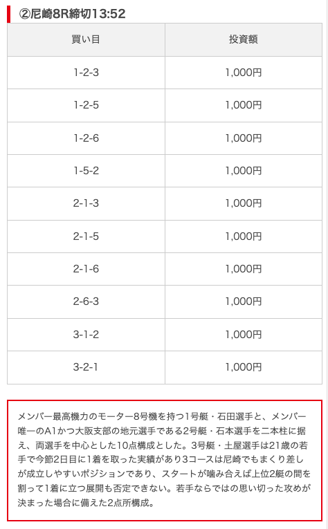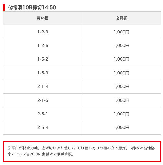 実際に公開された買い目がこちら。