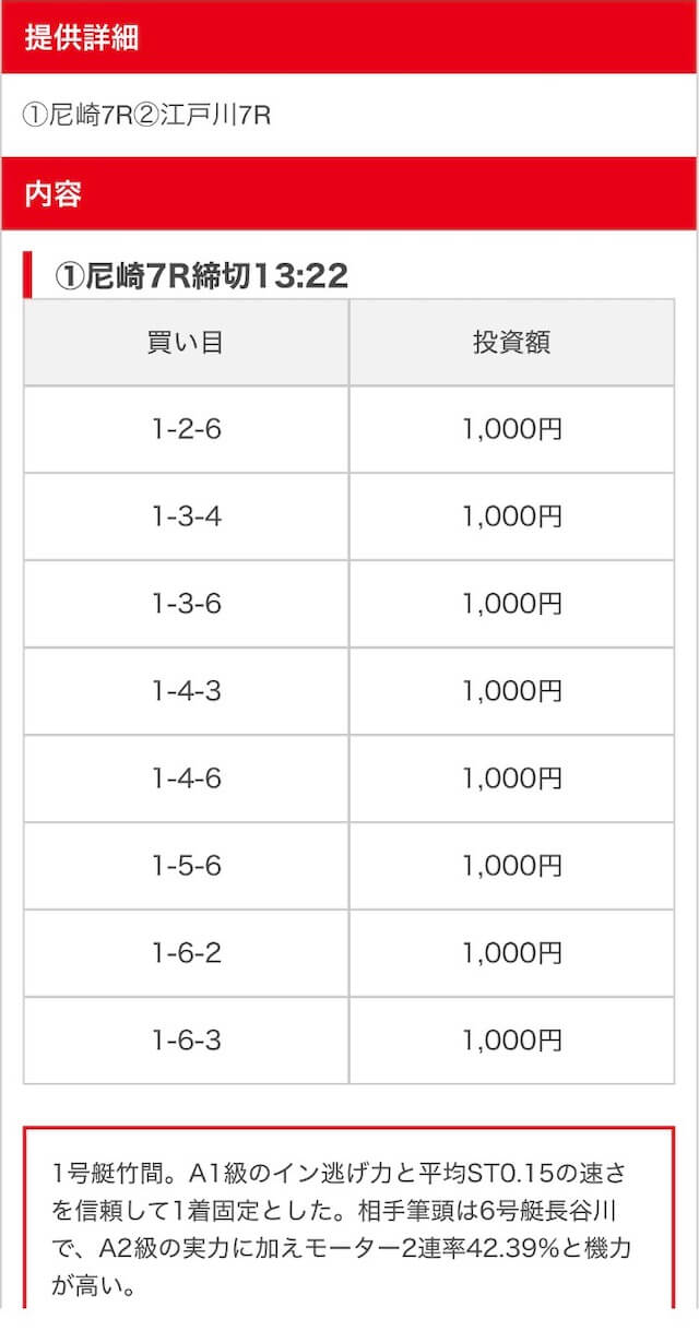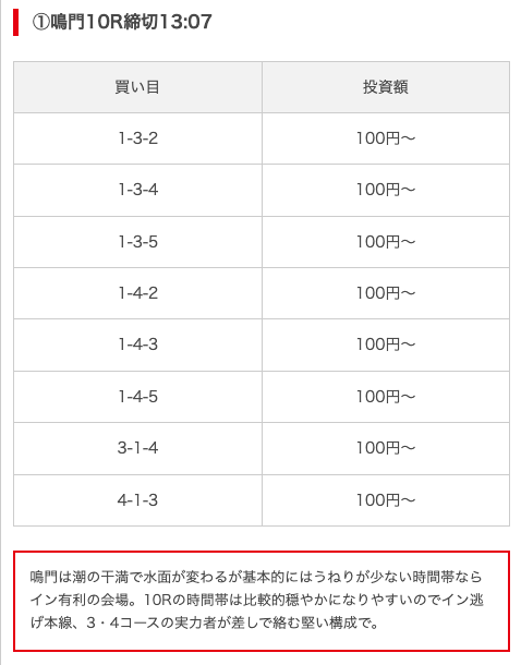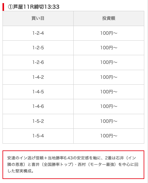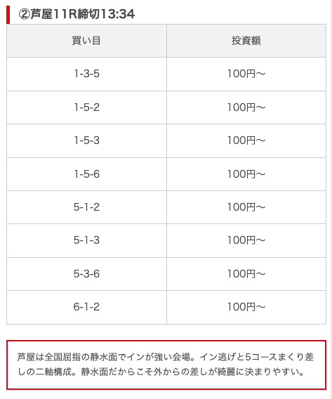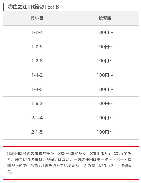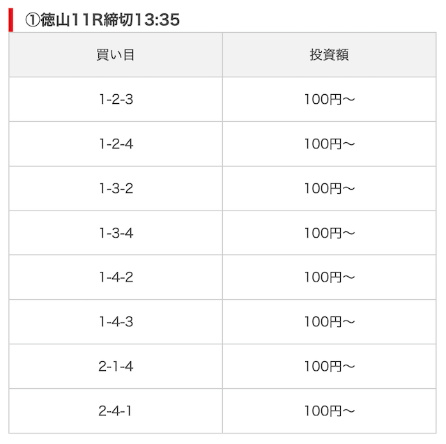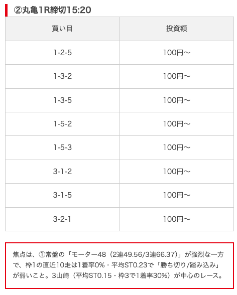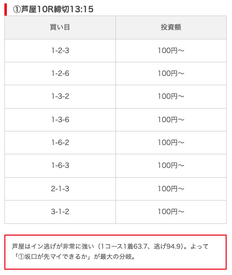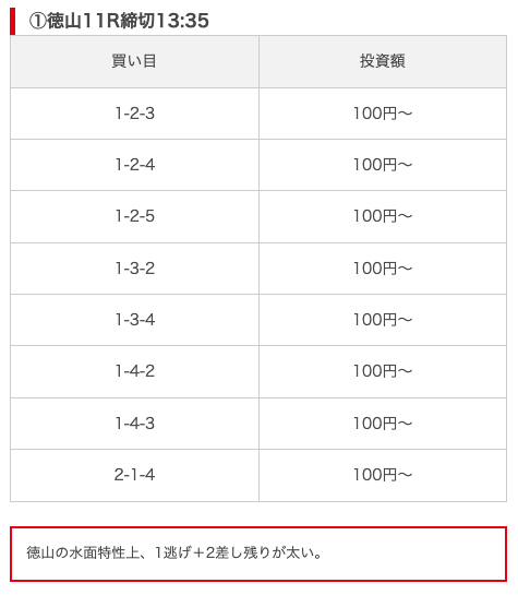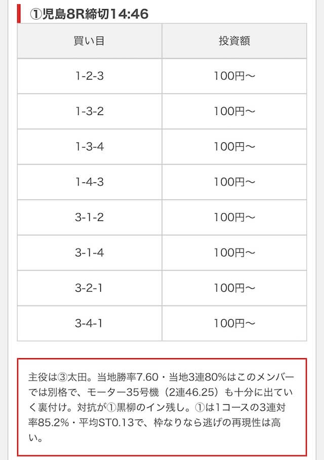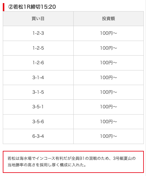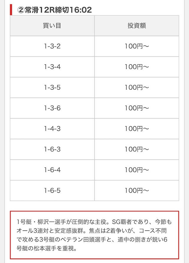 実際に公開された買い目がこちら。