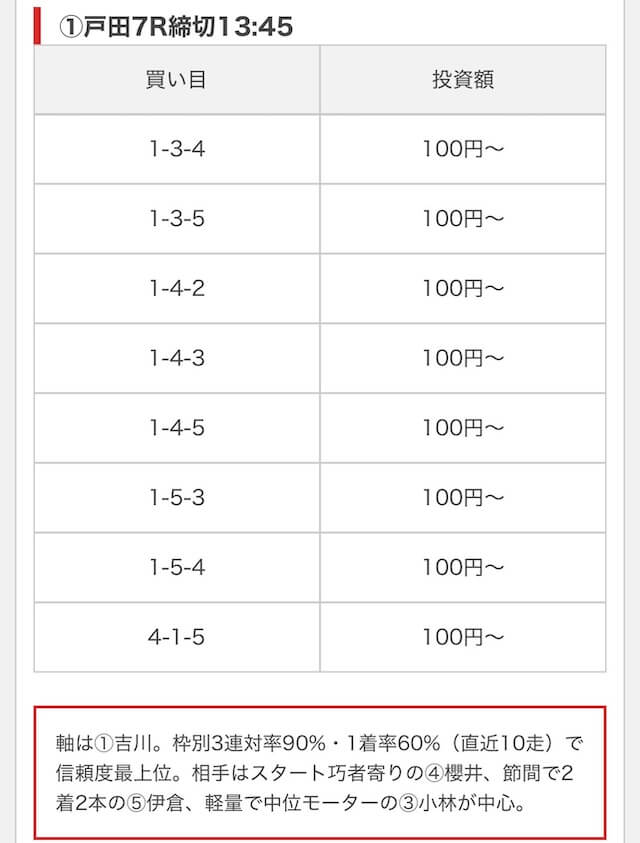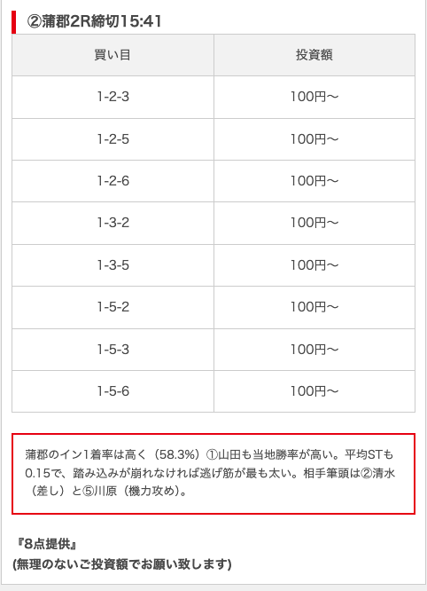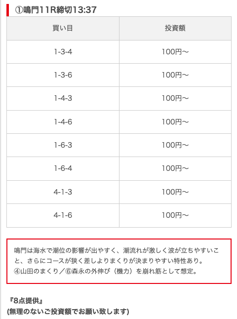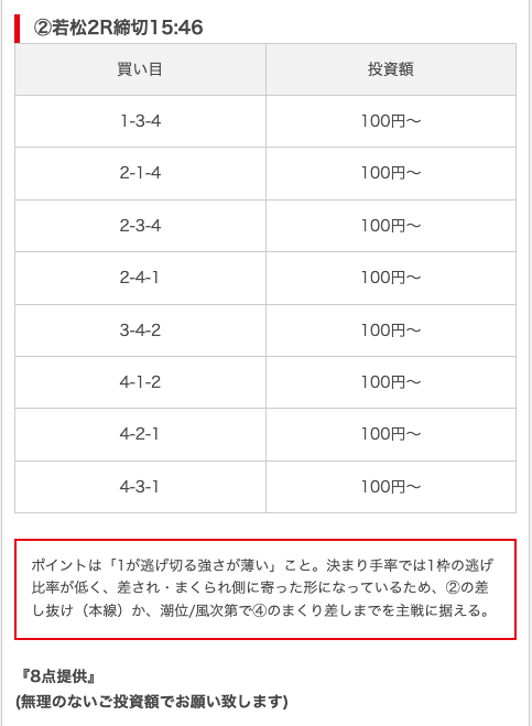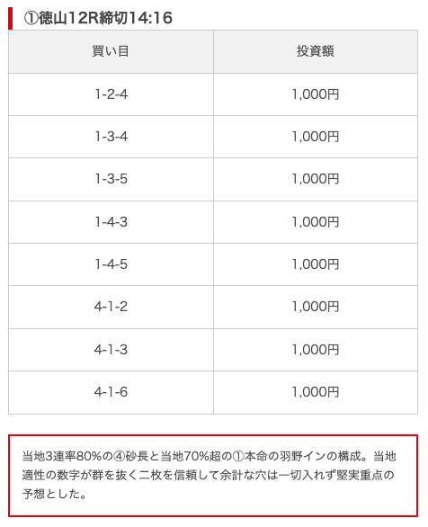 - 買い目に根拠・見解が書かれていて信憑性が高い(無料予想)
