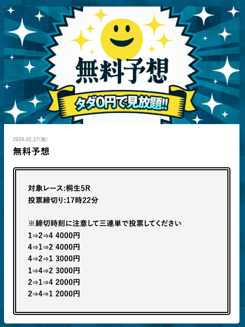 - 荒れる展開も簡単に読み当てる(無料予想)