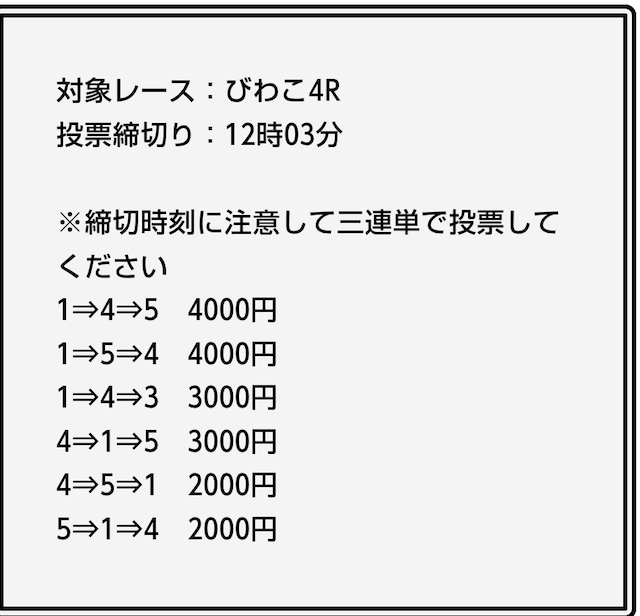 | 予想方法(情報元) | 競艇場・選手の能力・裏情報など⋯ |