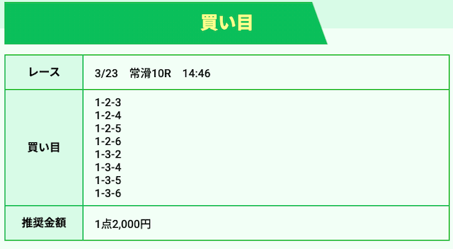 - 買い目点数が多く時々トリガミになる(無料予想)