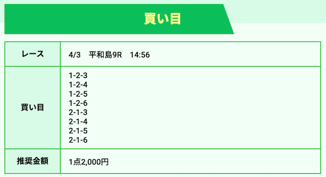 | 2025/3/12 トップライン 情報料金+舟券代 200,000円+15,000円 |