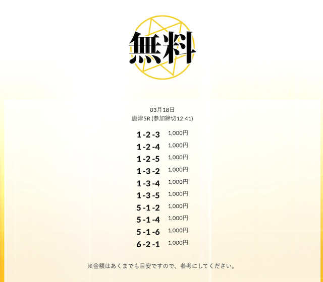 継続的に無料予想に参加し、初回限定プランの「八咫烏」に参加してください。20万円以上を稼げたタイミングで「朱雀」「白虎」あたりに参加。その後は軍資金に応じて2〜3連敗しても大丈夫な範囲で「高額プラン」にチャレンジしていきましょう。