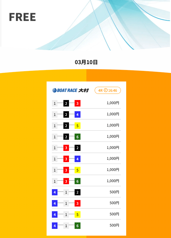 無料予想に参加し続けて、今月は絶好調でした〜。末に差し掛かっているけど20万円ほどは稼げましたね。他の競艇予想サイトの無料予想は精度が高い印象・・・。オッズが割れる難易度が高いレースを少点数で当てに行く予想精度は有料級ですわな。今のうちに稼いでおくのが吉かと!