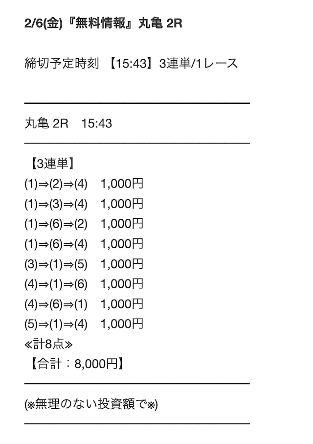 - 舟券代:12,000円(1点2,000円)