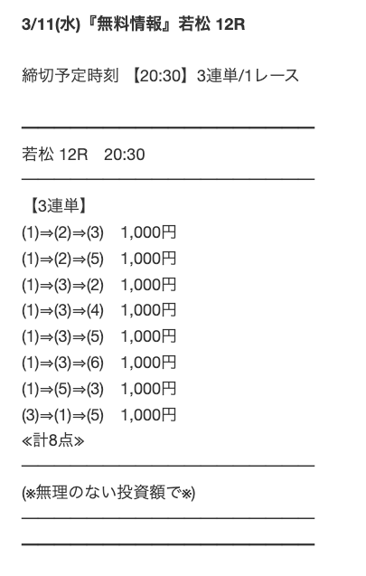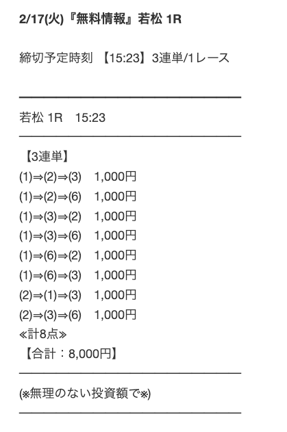 - 2026/03/18的中 無料予想で15,200円獲得2026/03/09的中 無料予想で24,000円獲得2026/03/05的中 無料予想で14,500円獲得2026/03/03的中 無料予想で17,900円獲得2026/02/25的中 無料予想で21,000円獲得2026/02/24的中 無料予想で15,400円獲得2026/02/05的中 無料予想で13,600円獲得2026/02/04的中 無料予想で8,500円獲得2026/01/08的中 無料予想で16,500円獲得2025/12/25的中 無料予想で18,000円獲得