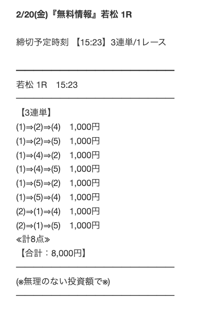 高い情報料金を払ったにも関わらず不的中。