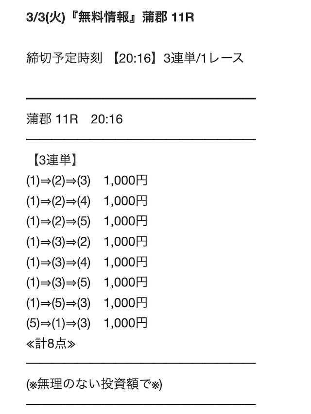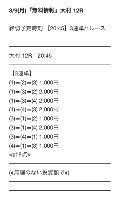 口コミ評価悪かったから不安だったけど、当たるじゃん!普通に1レースで1万円くらい稼げました。