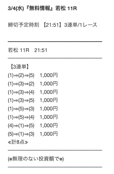 軍資金5万円で無料予想に参加した結果