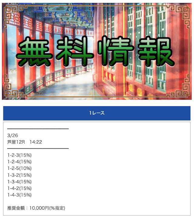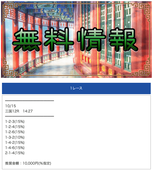 | プラン名 | 情報料金 | 対象 | 舟券代 | 目標金額 |