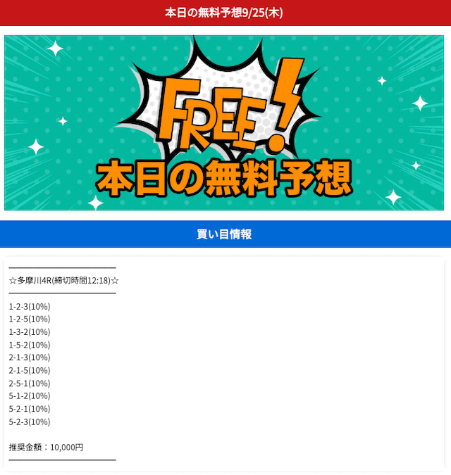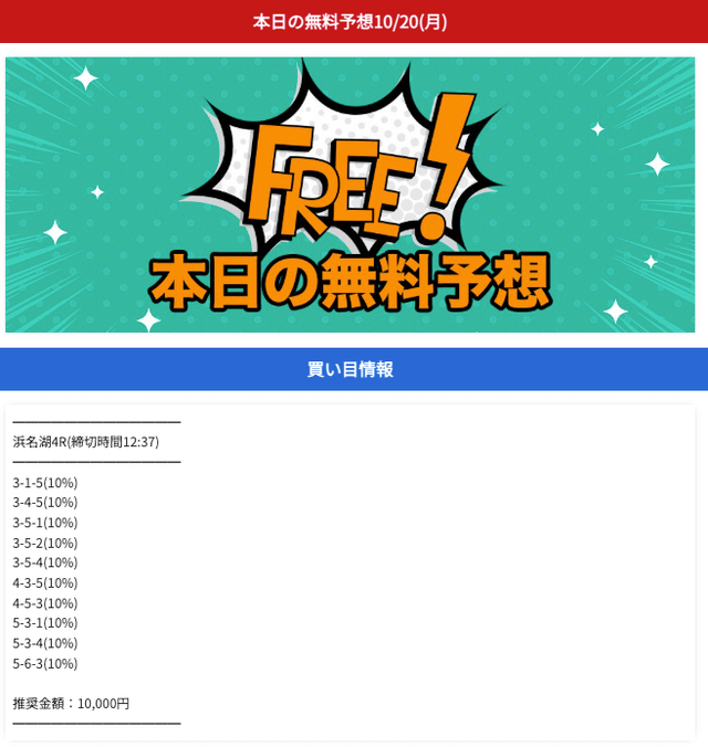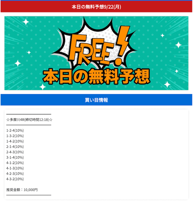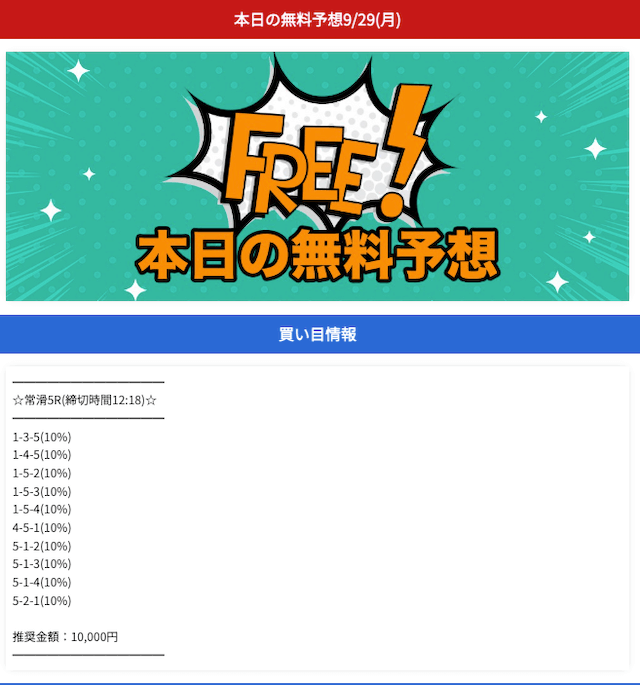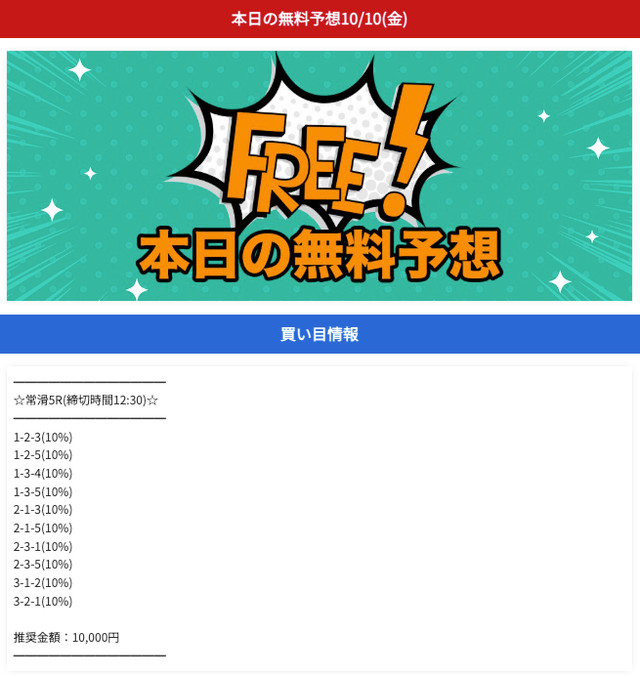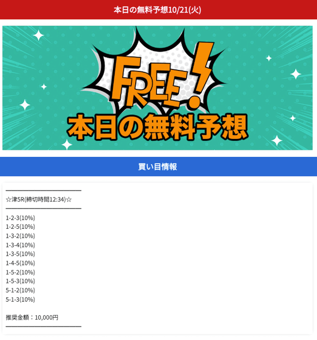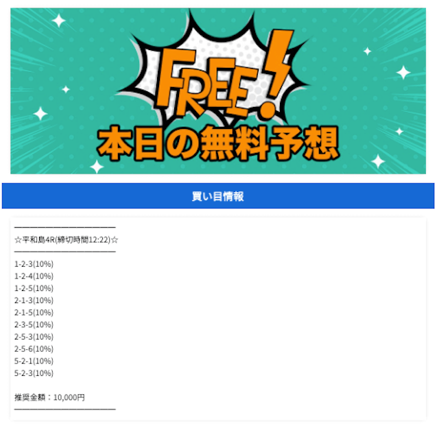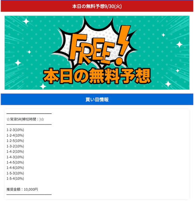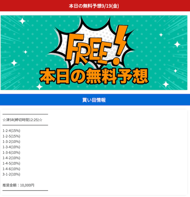 皆さんは、安定感抜群の無料予想から参加してみてください。