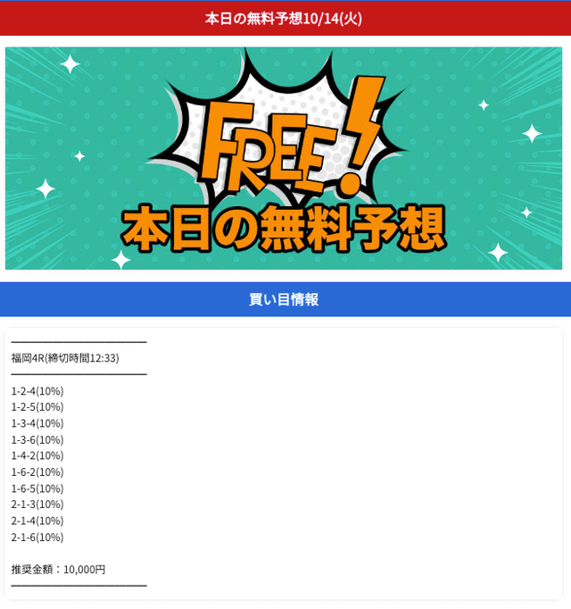 短期間で大金を手にしたい方は、ぜひ有料予想もチャレンジしてみてください。