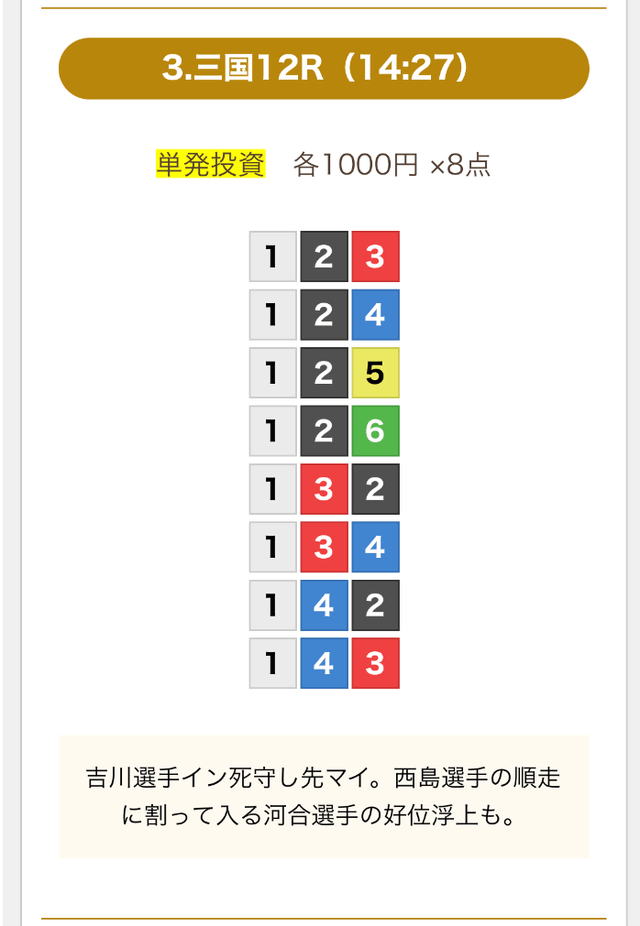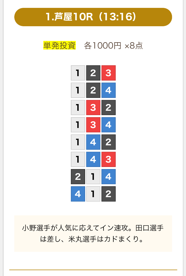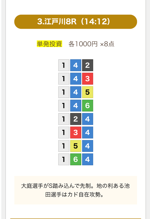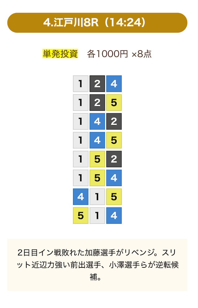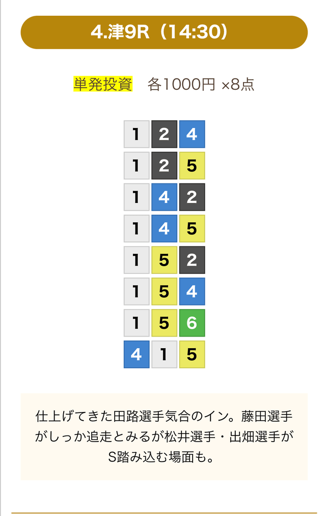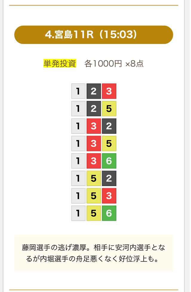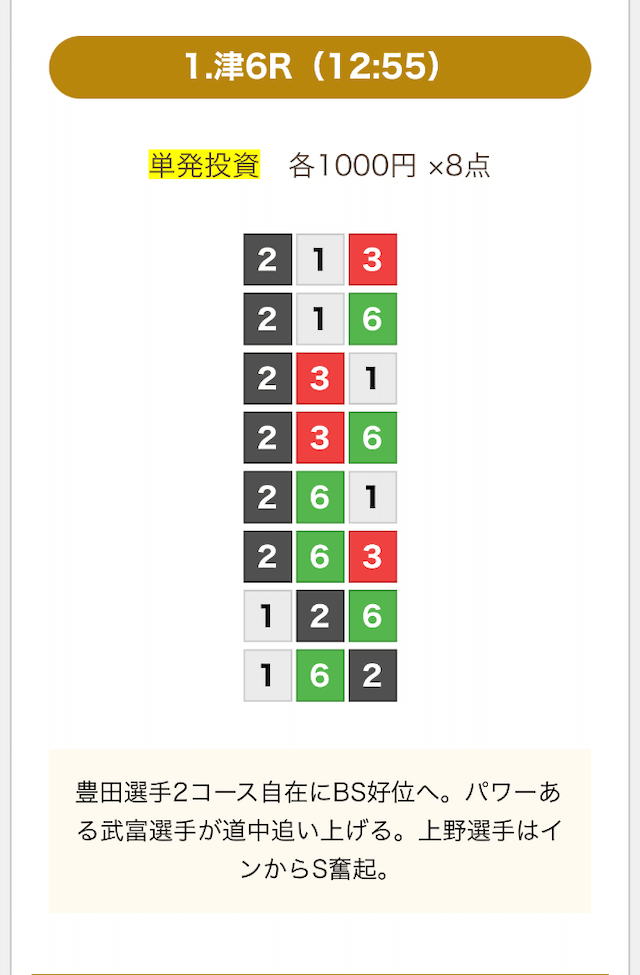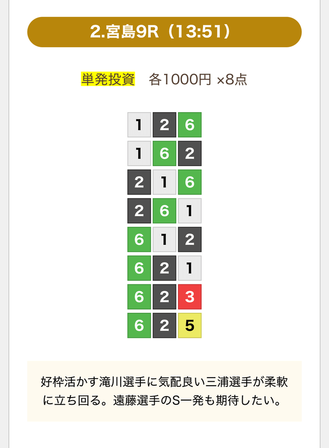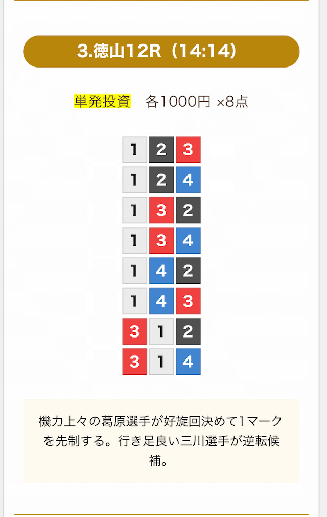 - 「この1号艇はスタート遅れやすいから軸外し」とか、他サイトが無視する情報が当たってて感動。これは出走表にある情報以外に色々と分析しているのが伝わるね。投稿日:2025/03/02