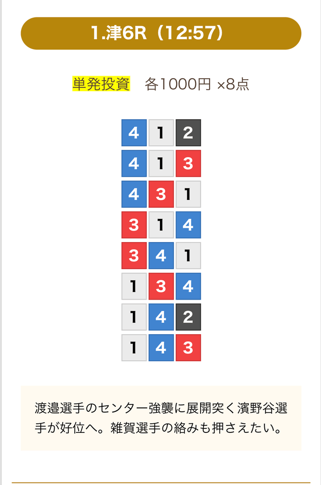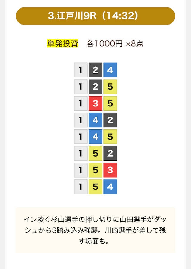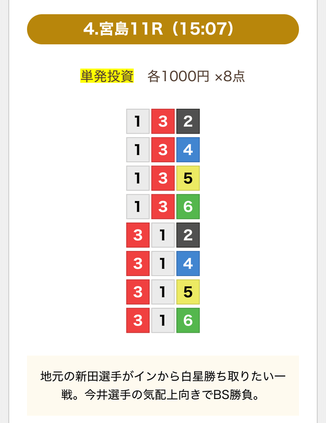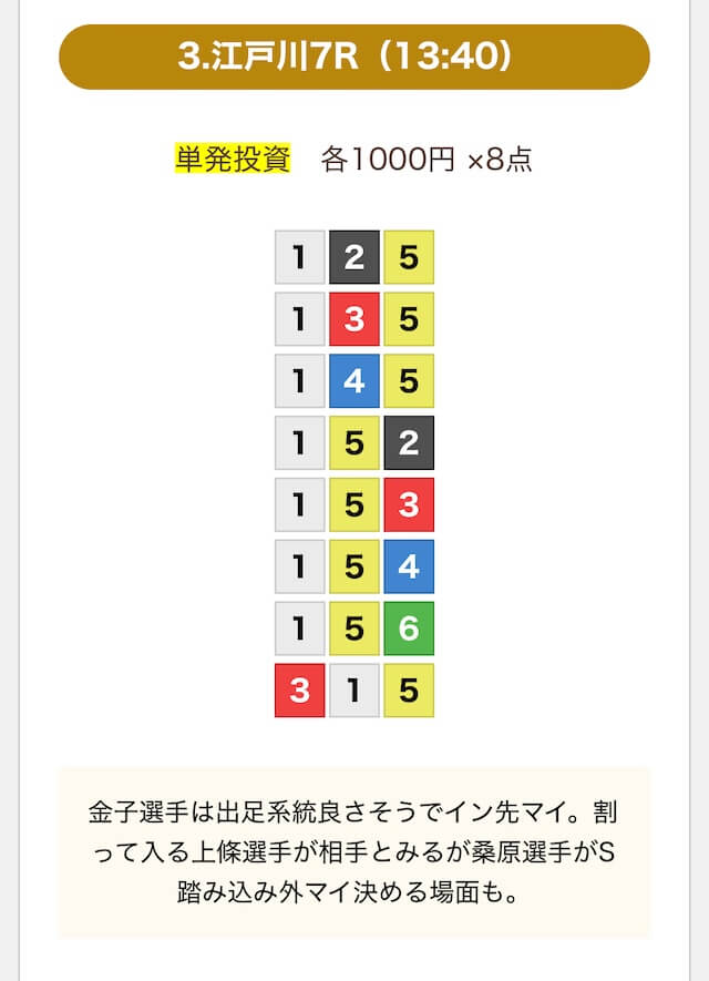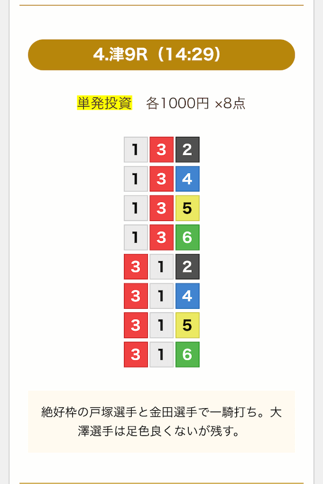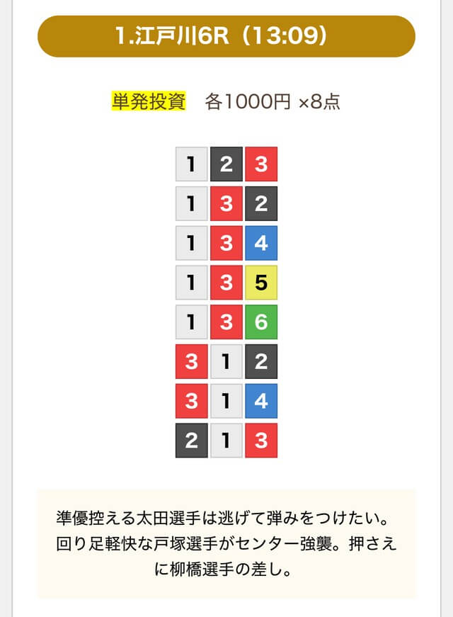 匿名無料予想に「見解」が必ずついていて、それがまた的を射てる。読むだけでも勉強になるから、初心者にもおすすめ。投稿日:2025/09/05