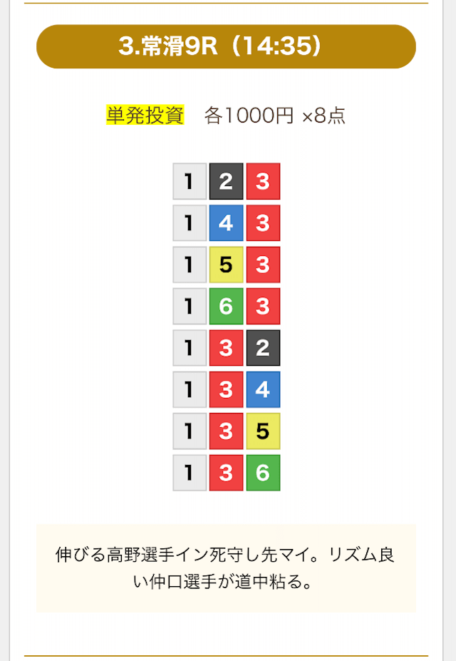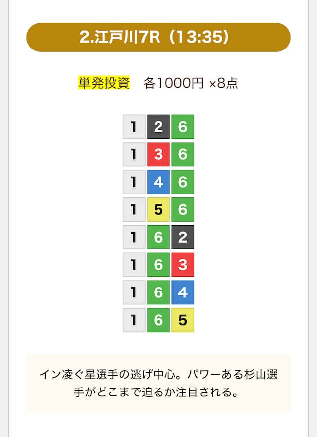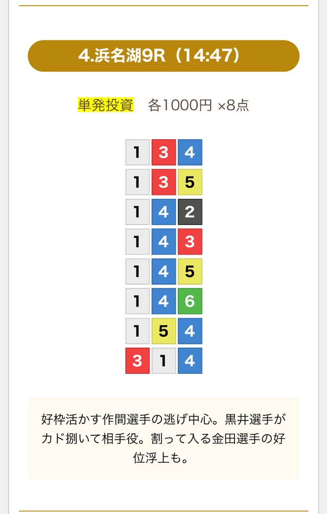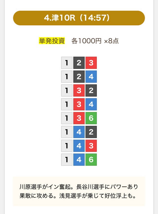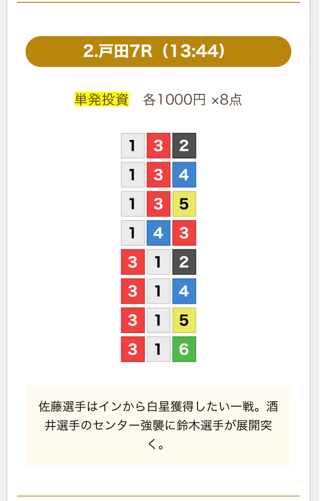 匿名無料予想に「見解」が必ずついていて、それがまた的を射てる。読むだけでも勉強になるから、初心者にもおすすめ。投稿日:2025/09/05