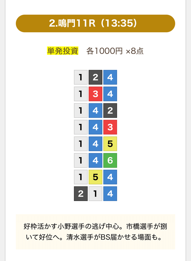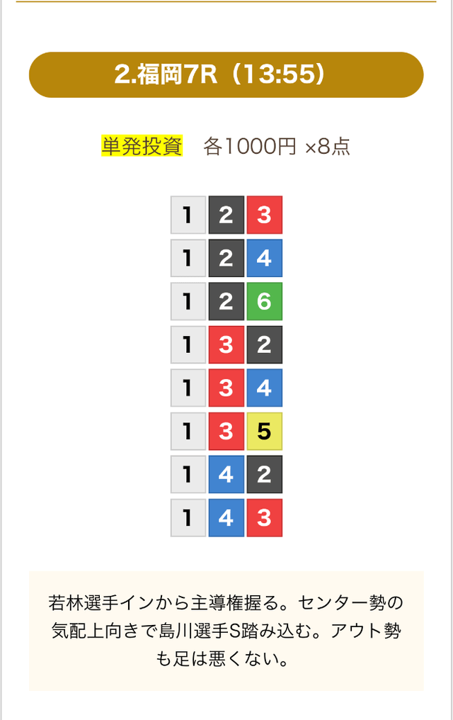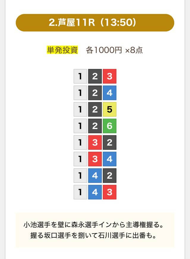- 無料予想に「見解」が必ずついていて、それがまた的を射てる。読むだけでも勉強になるから、初心者にもおすすめ。投稿日:2025/09/05