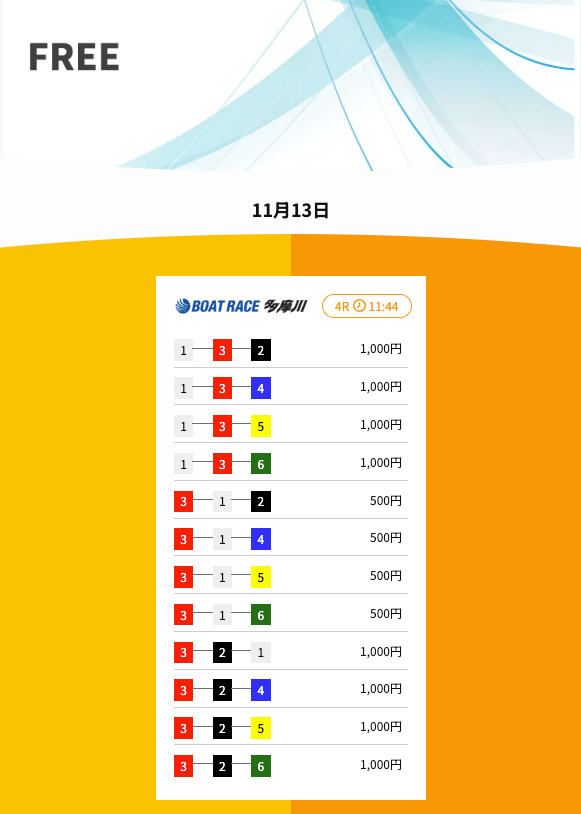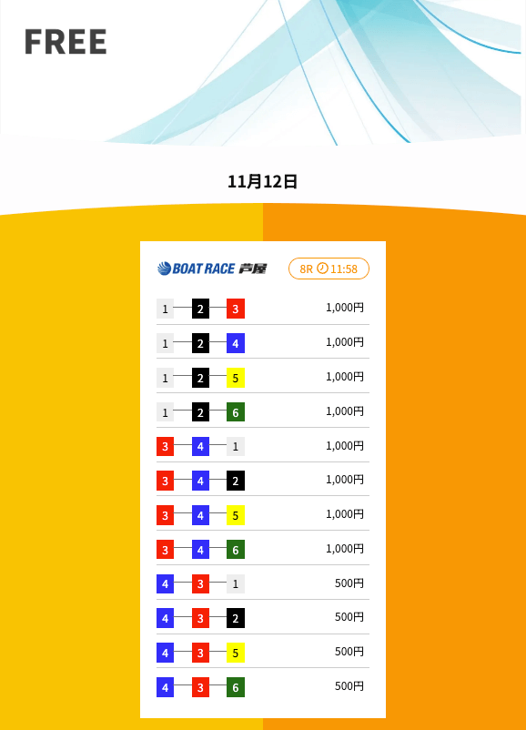 無料予想に参加し続けて、今月は絶好調でした〜。末に差し掛かっているけど20万円ほどは稼げましたね。他の競艇予想サイトの無料予想は精度が高い印象・・・。オッズが割れる難易度が高いレースを少点数で当てに行く予想精度は有料級ですわな。今のうちに稼いでおくのが吉かと!