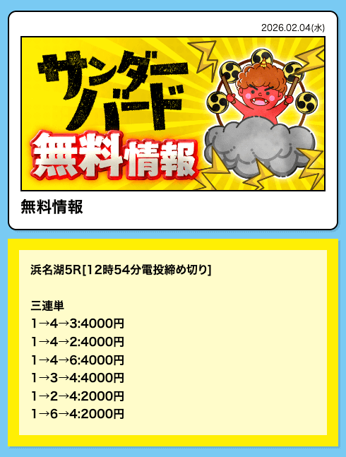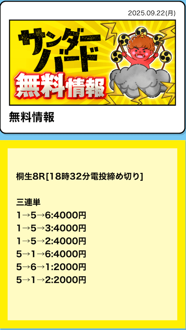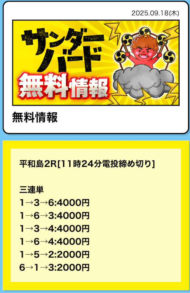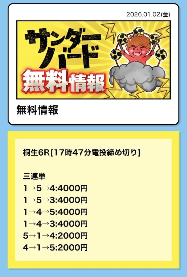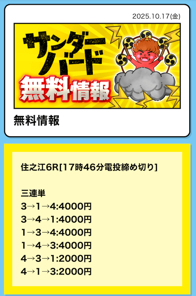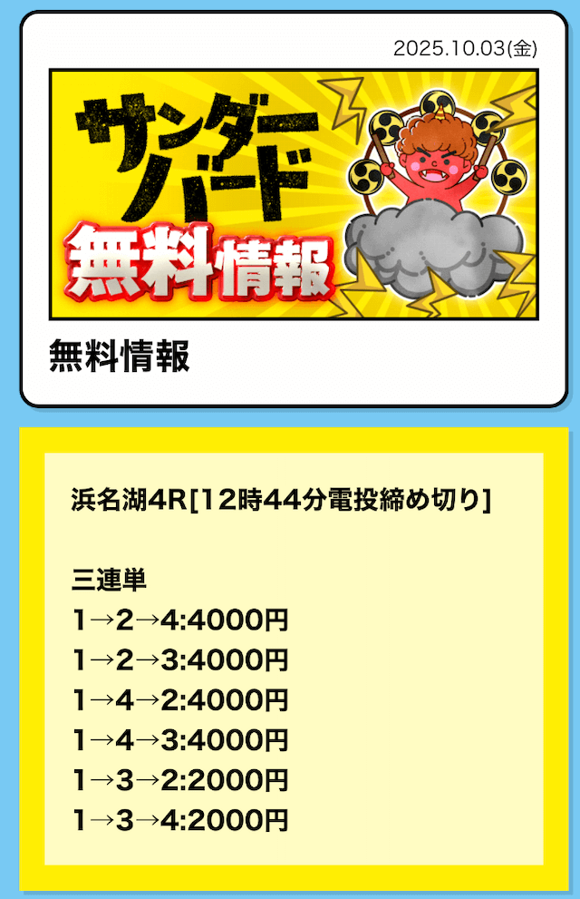 匿名今日の無料予想も的中!ありがとうございます!競艇サンダーバードのLINEの追加者がどんどん増えていて、多くの方から支持されているのが分かります。投稿日:2024/10/03