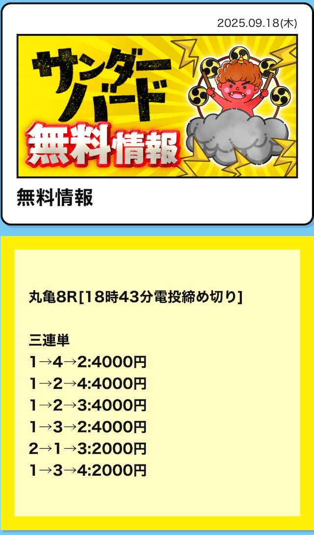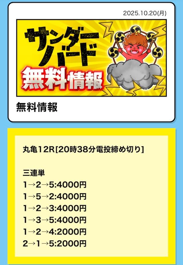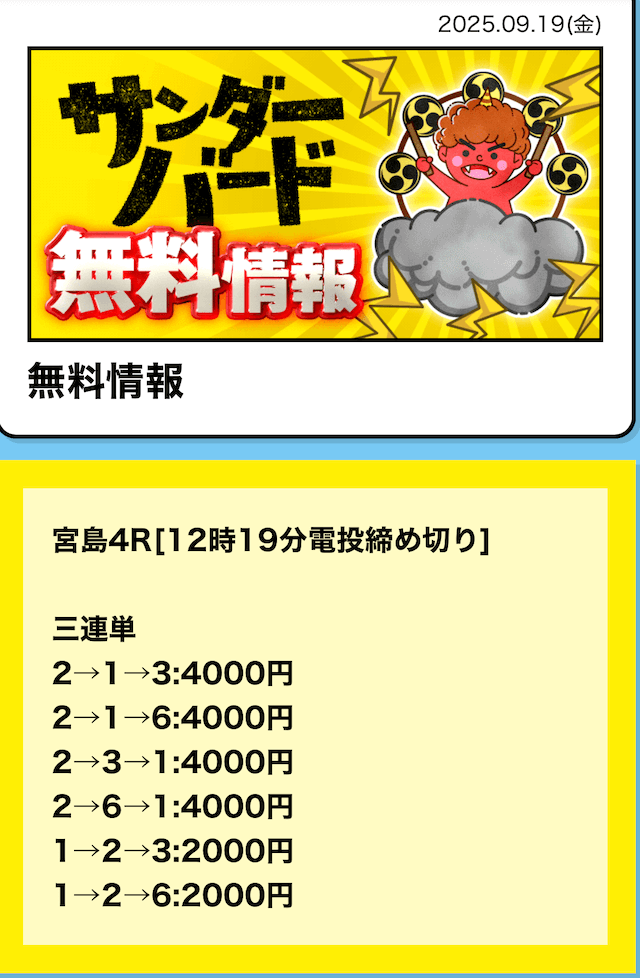 匿名的中実績で的中したプランだけではなく「この買い目を公開して外れてしまった」というところまで教えてくれる競艇予想サイトは競艇サンダーバードだけだよね。投稿日:2024/10/03