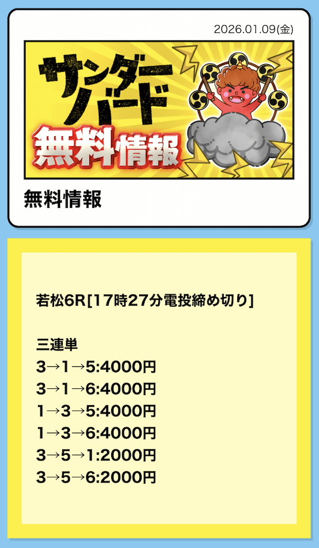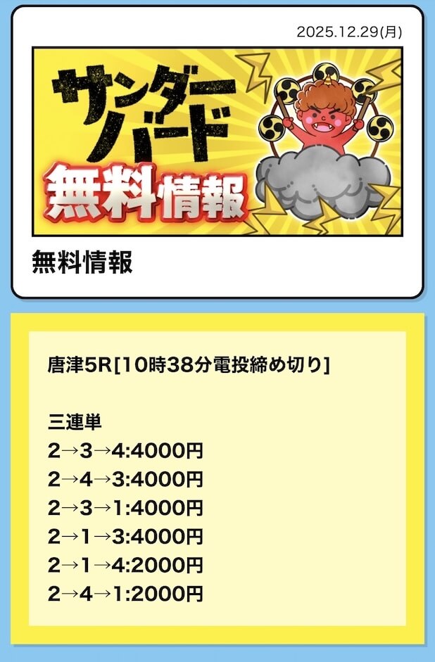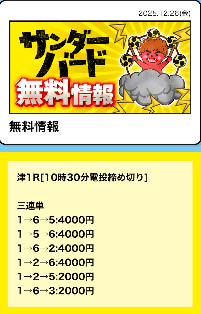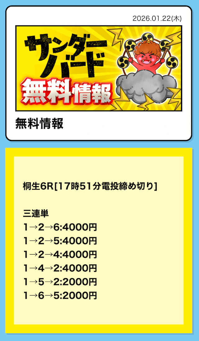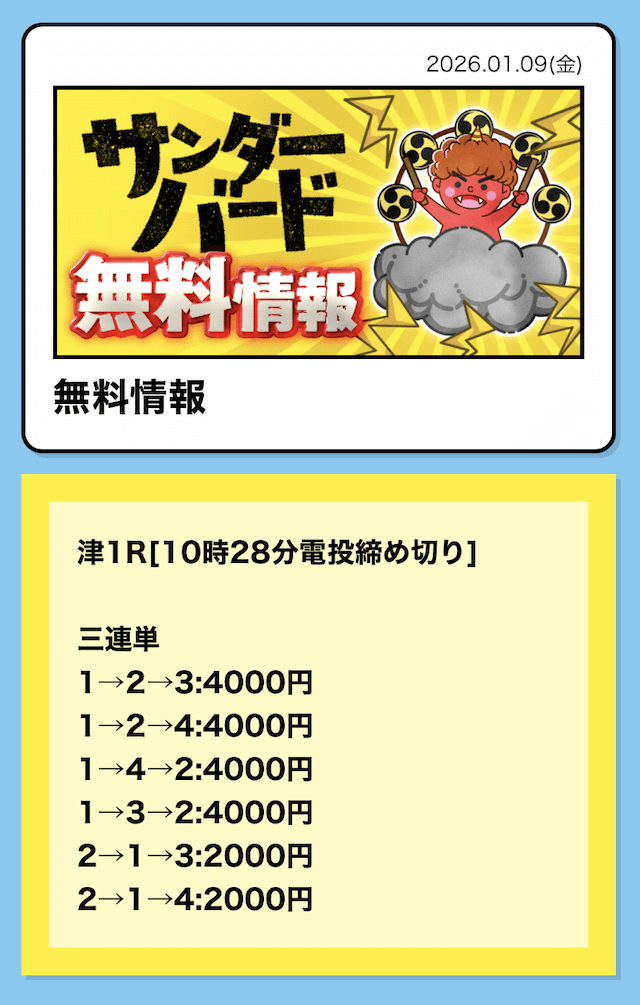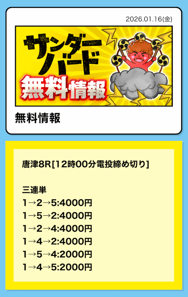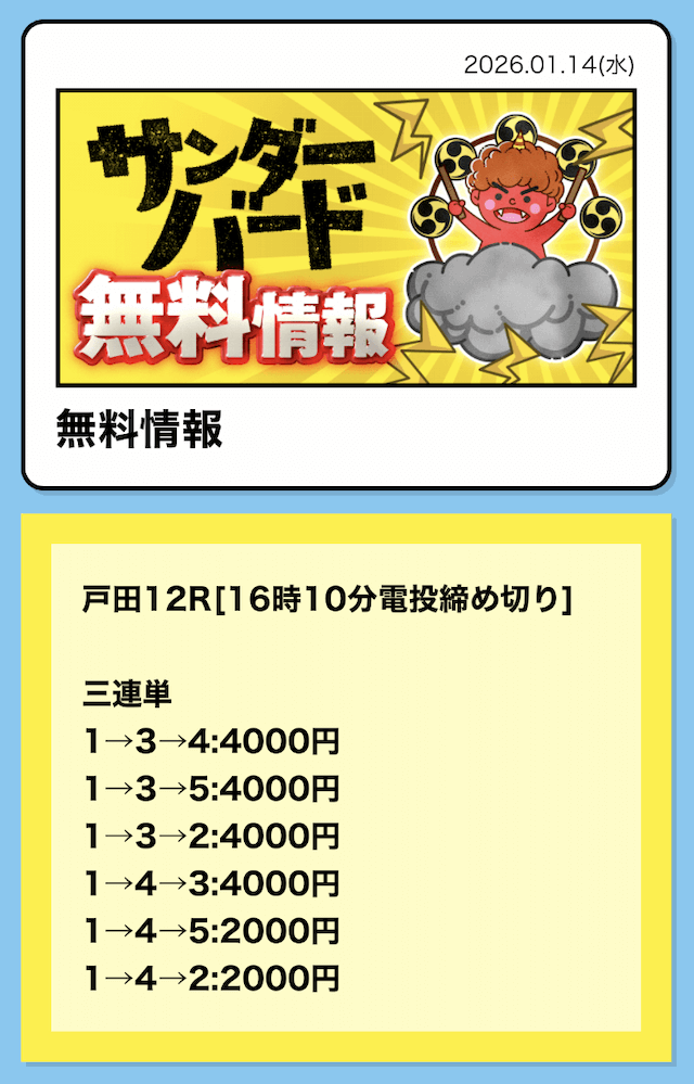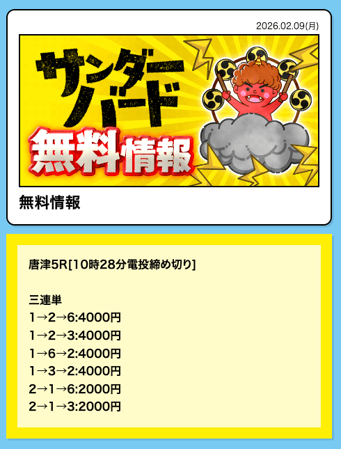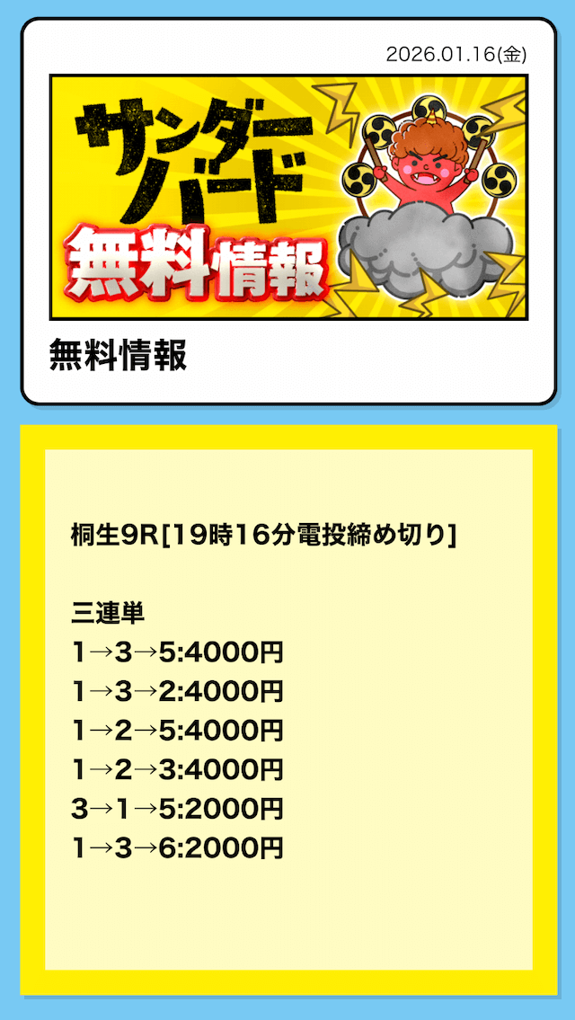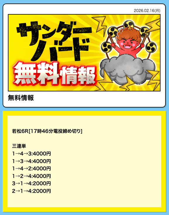 16時となったので、2レース目の予想が公開されました。