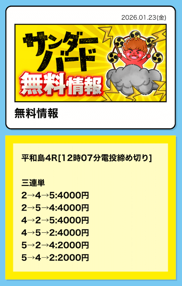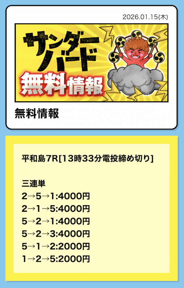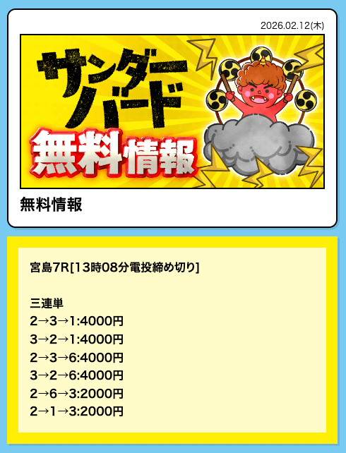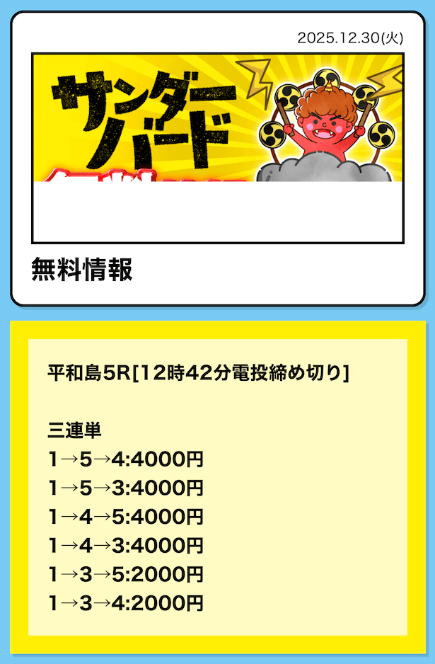 無料情報も宮島レースで当ててくれたし安定してる