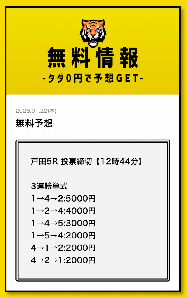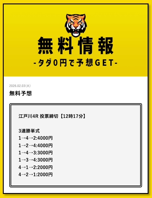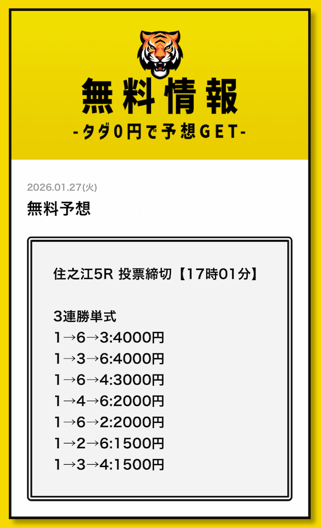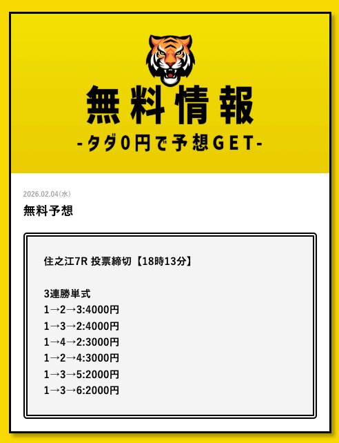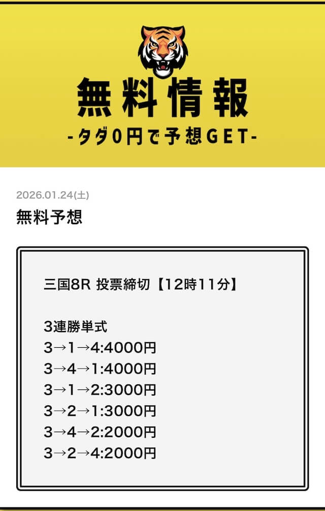 そこで競艇戦線では、タイガーボートの公開する予想に自腹で参加して検証していこうと思います。