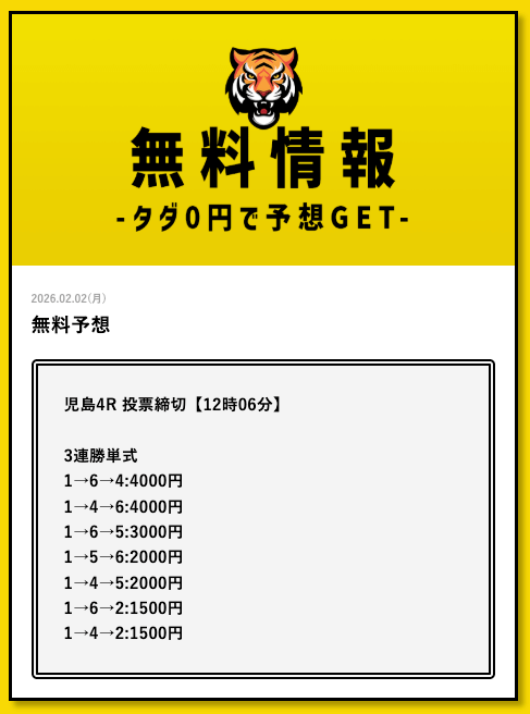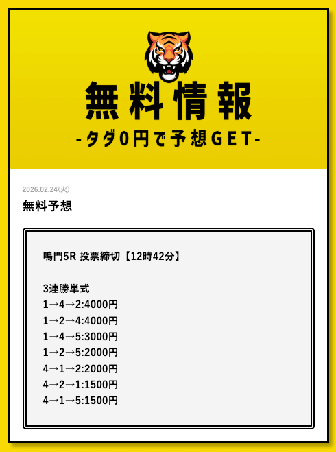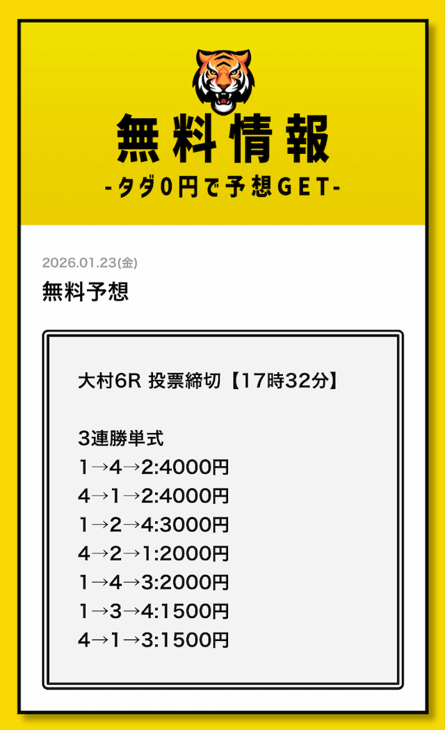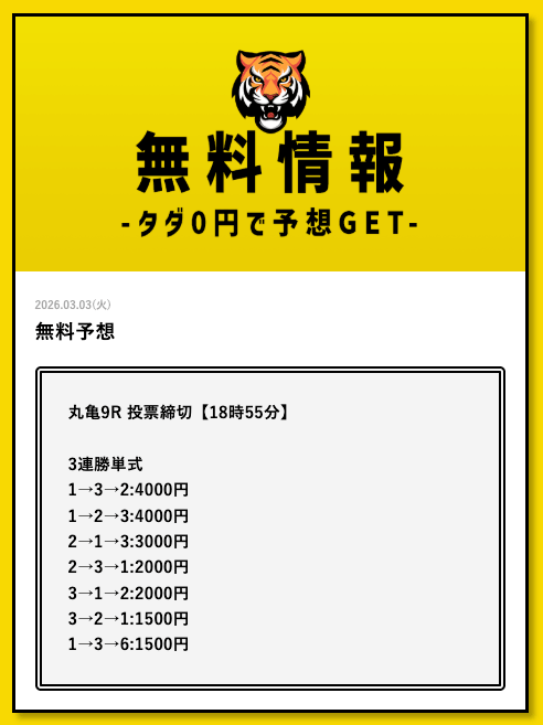 タイガーボートの無料予想に初参加