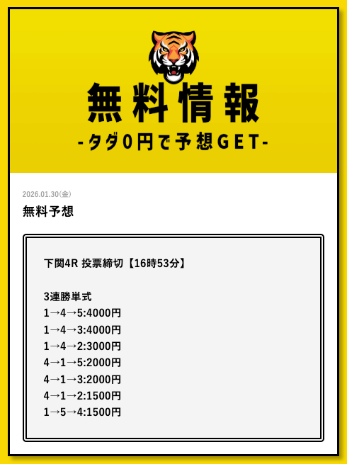 まずは登録だけ済ませて、直近の的中実績から調子をチェックしてみてください。