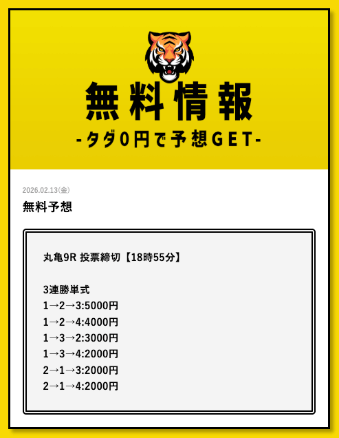 タイガーボートは無料予想・有料予想ともに的中を連発していますが⋯