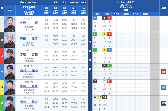 ②④号艇はどちらもA級であることから、階級を重視している模様。