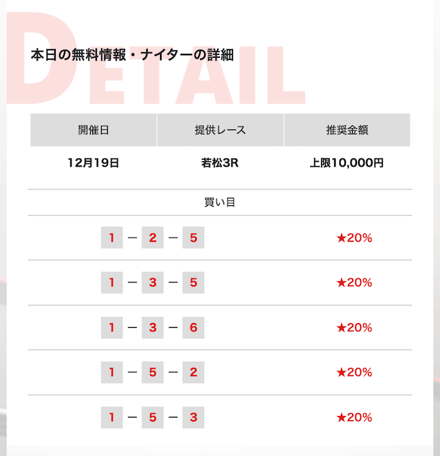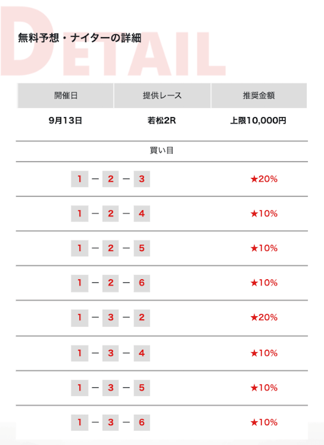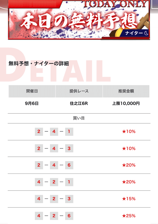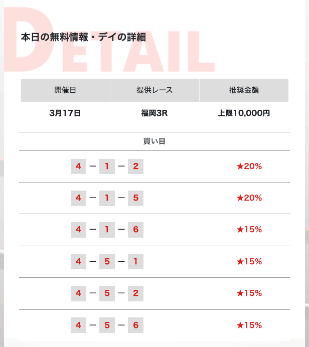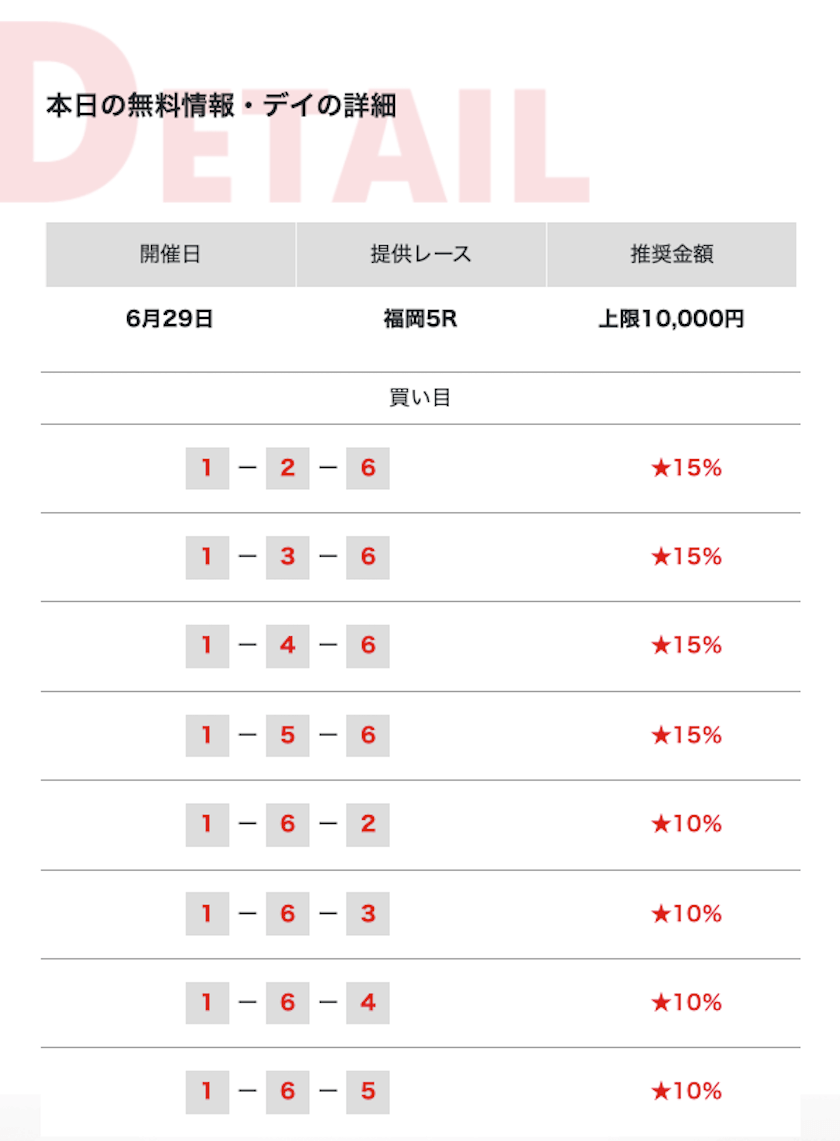 では、無料予想・有料予想の項目毎に分けて、詳しい内容を見ていきましょう。