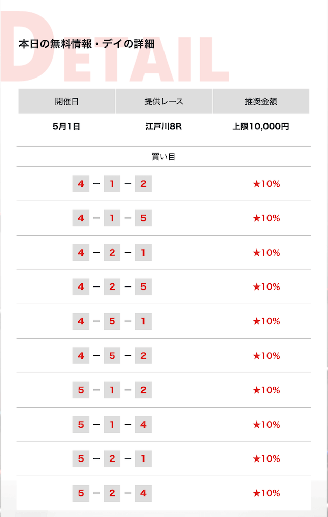 - プラン名期間限定プラン情報料金35,000〜50万円投資金額-対象3連単コロガシ目標金額40〜500万円