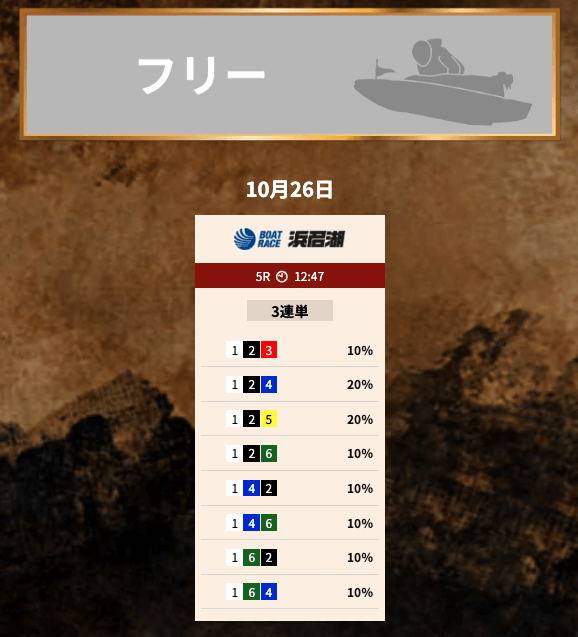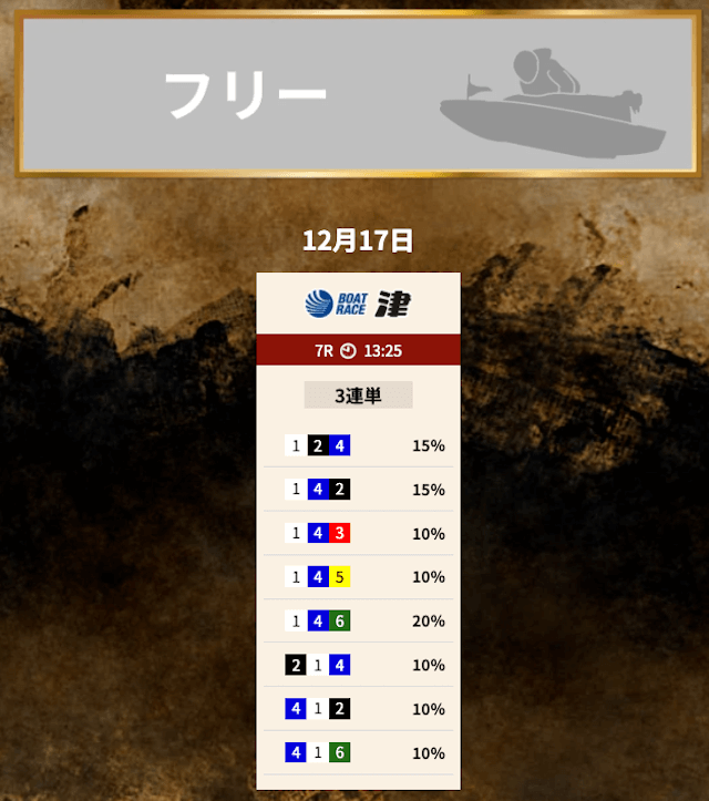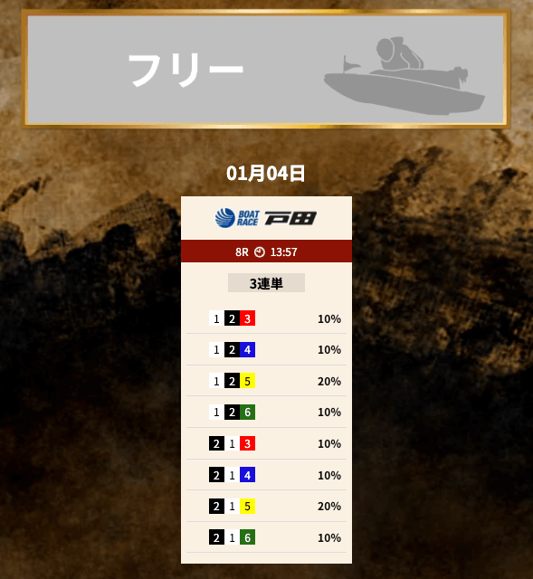 のなか競艇トレジャーハンターの無料予想に1週間ほど参加して、7戦5勝2敗の5万円のプラスでした。その後は「初回限定プラン」にチャレンジ。見事に26万円を獲得。絶好調すぎる。プラン設計が分かりやすいのがいいですね。初回限定プランは外れてもポイントが返ってくるようだし、一度参加してみると良いと思うよ。投稿日:2025/08/27