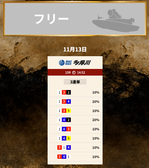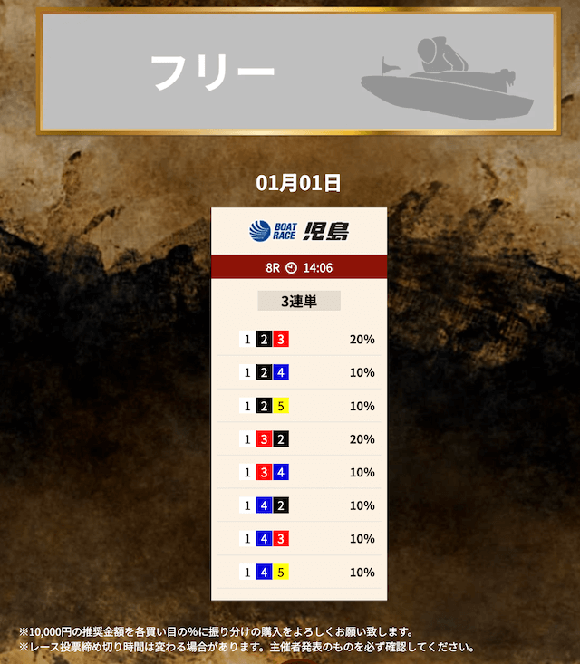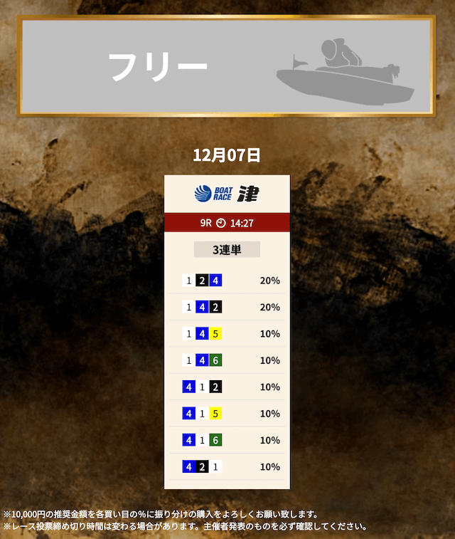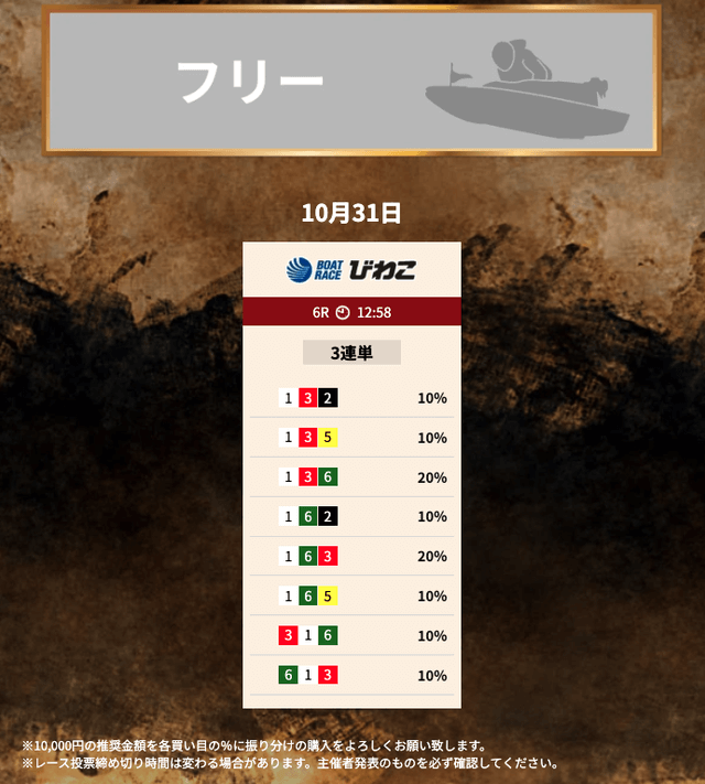 投資金額や購入点数の指定がない媒体に関しては、1点1,000円の10点で舟券を購入した結果は⋯