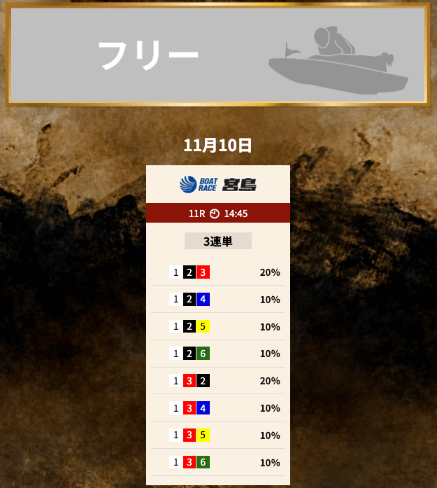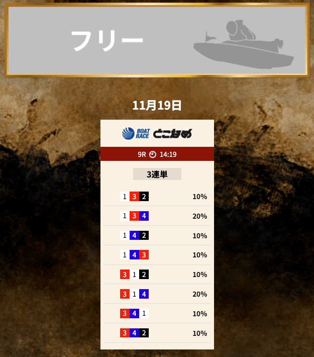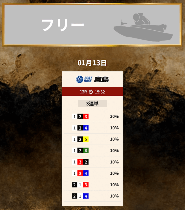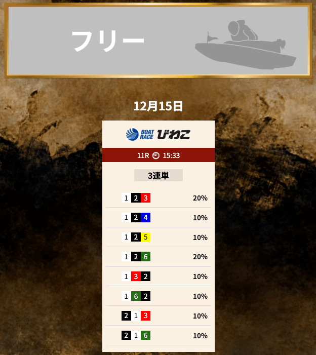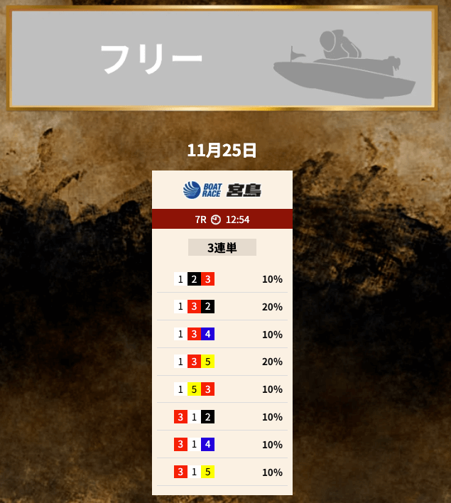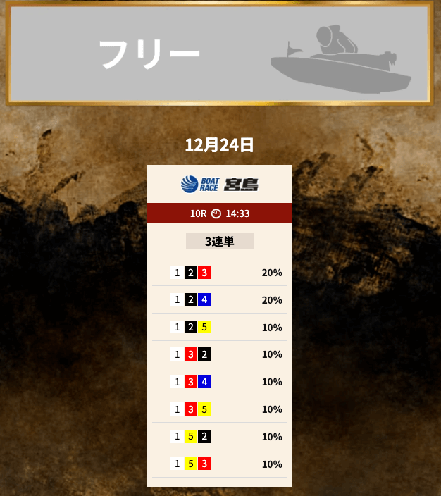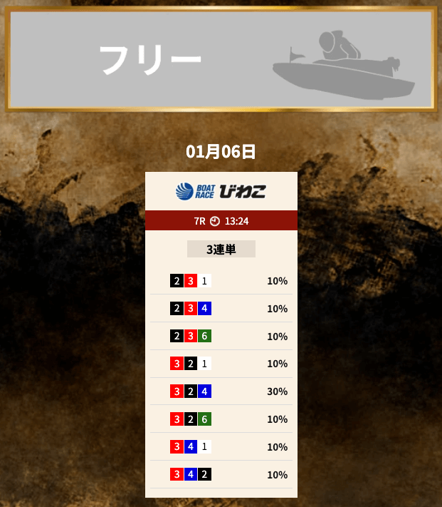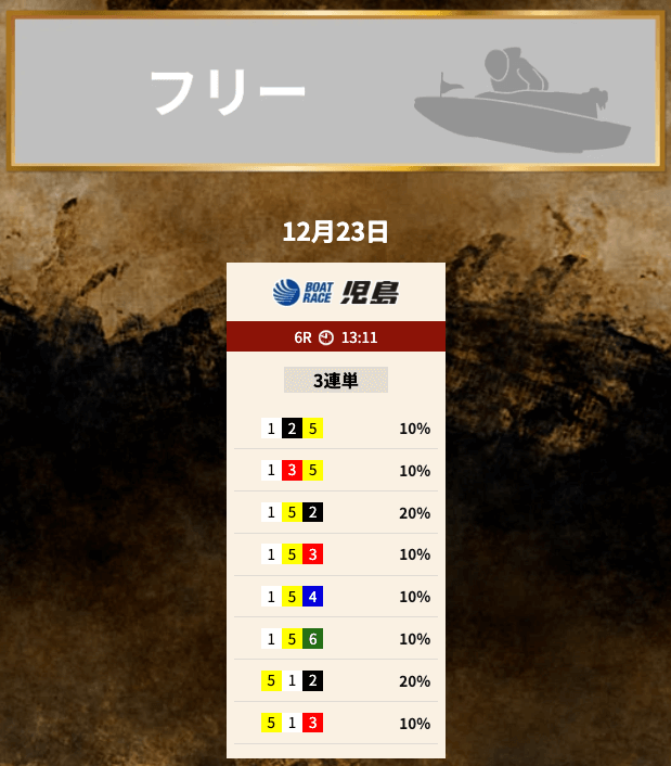 | 予想方法・サイトの強み | 情報・分析・出目の3つの部門に分かれて予想を構築 |