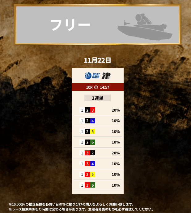 - 推奨舟券代:10,000円