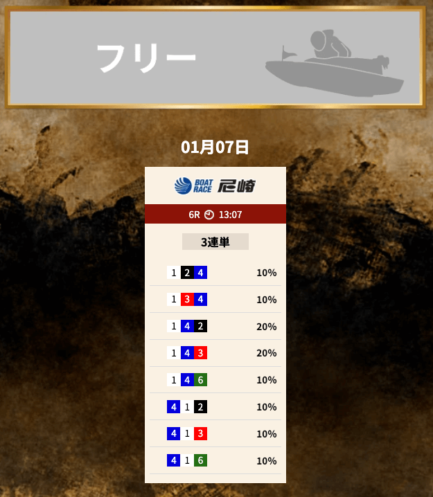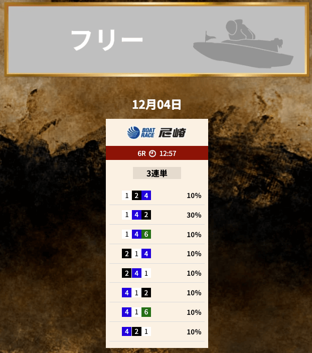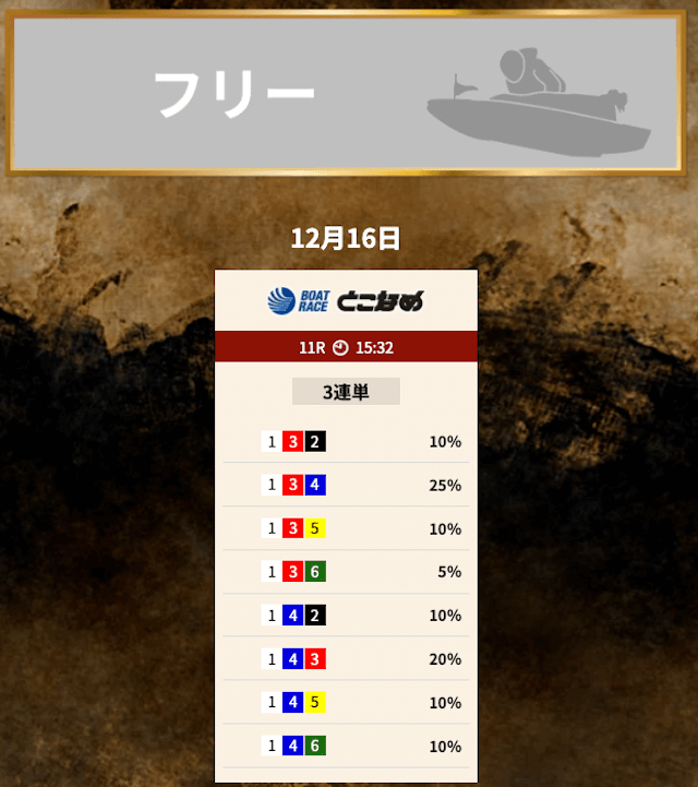 - 無料予想でも期待できる唯一無二の競艇予想サイトです。実際、5回中5回的中したので運が良かったのか?普通に小遣い稼ぎになるので押さえておくと良いかとw投稿日:2025/08/24