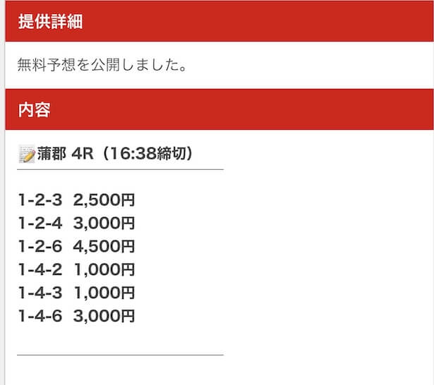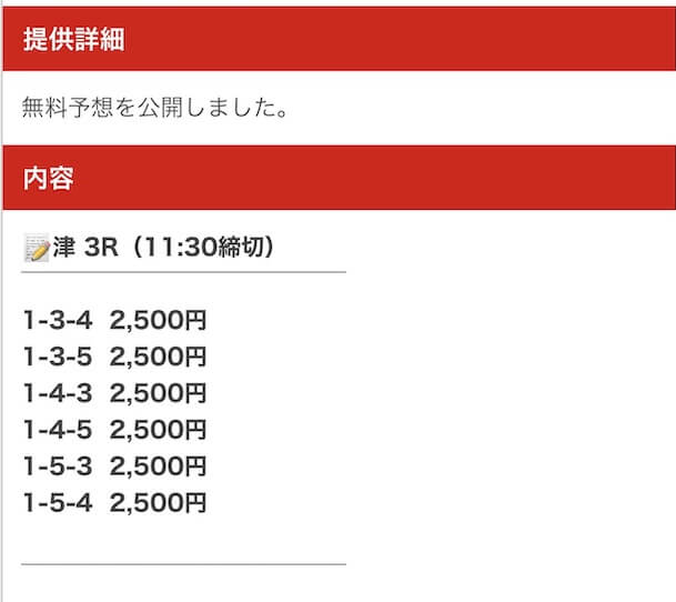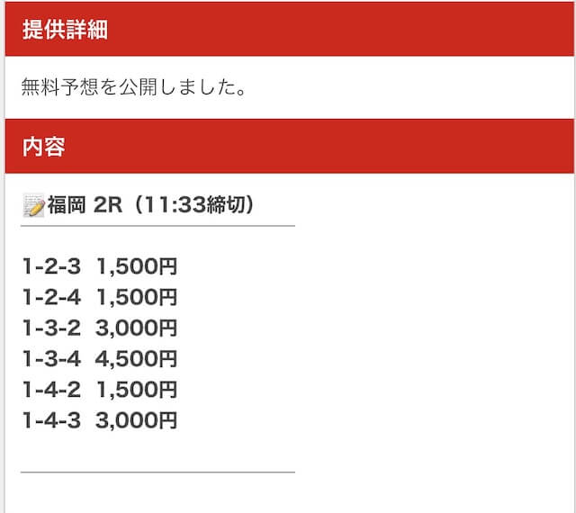 | 無料予想の口コミ | 無料予想における口コミの★評価 | 1.0点 |