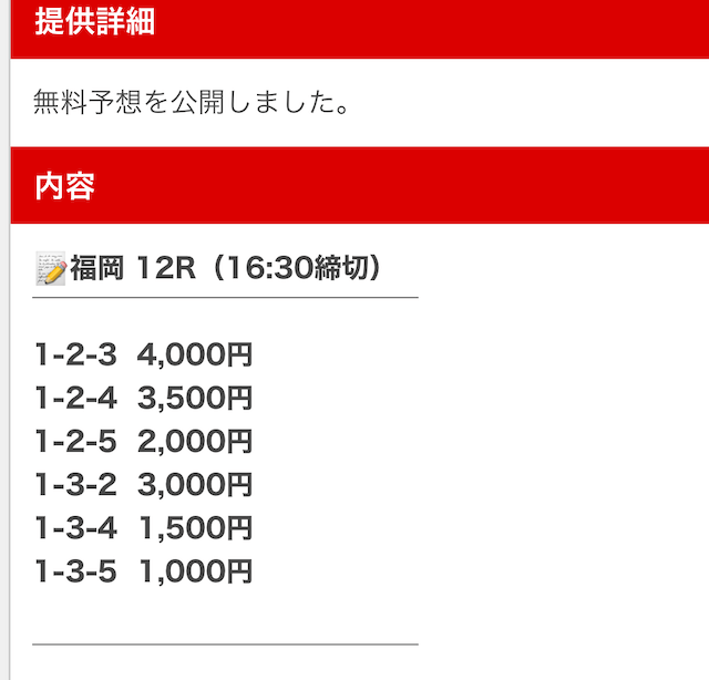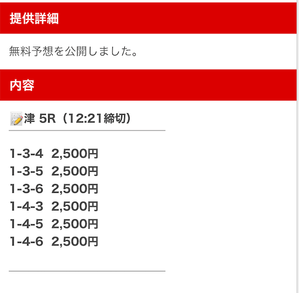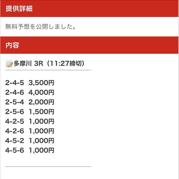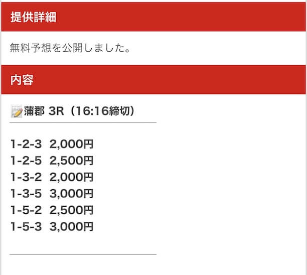 | 有料予想の口コミ | 有料予想における口コミの★評価 | 1.0点 |