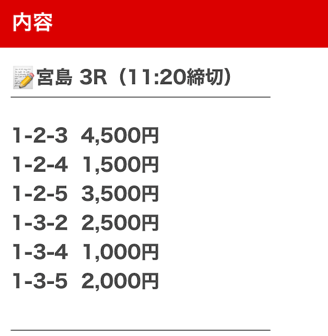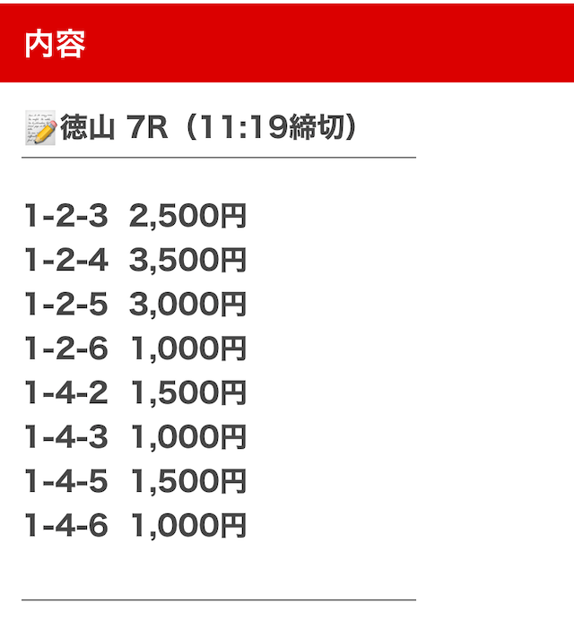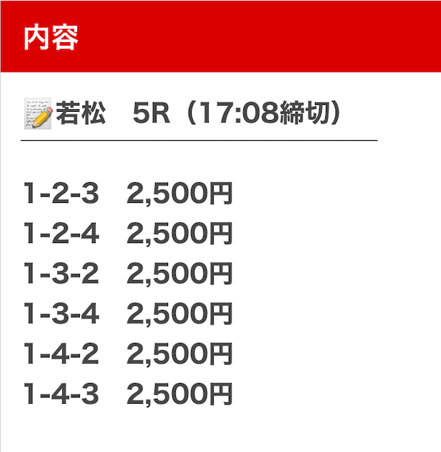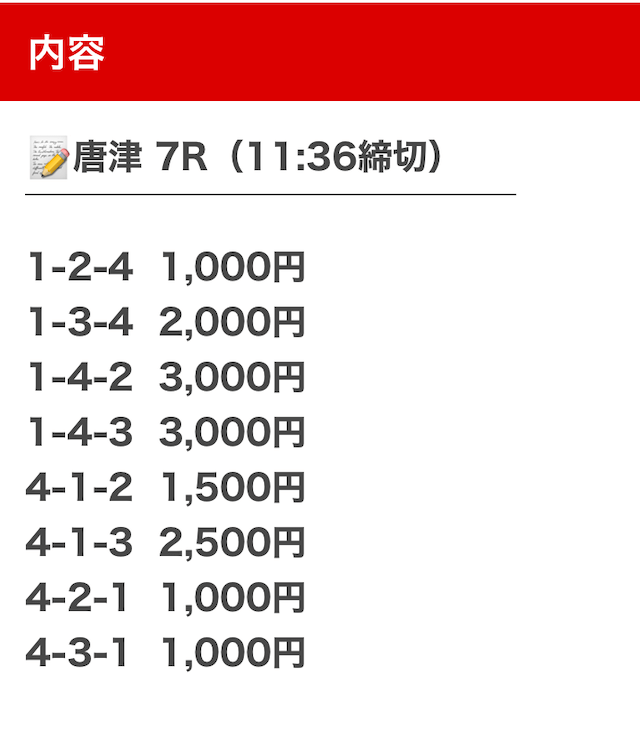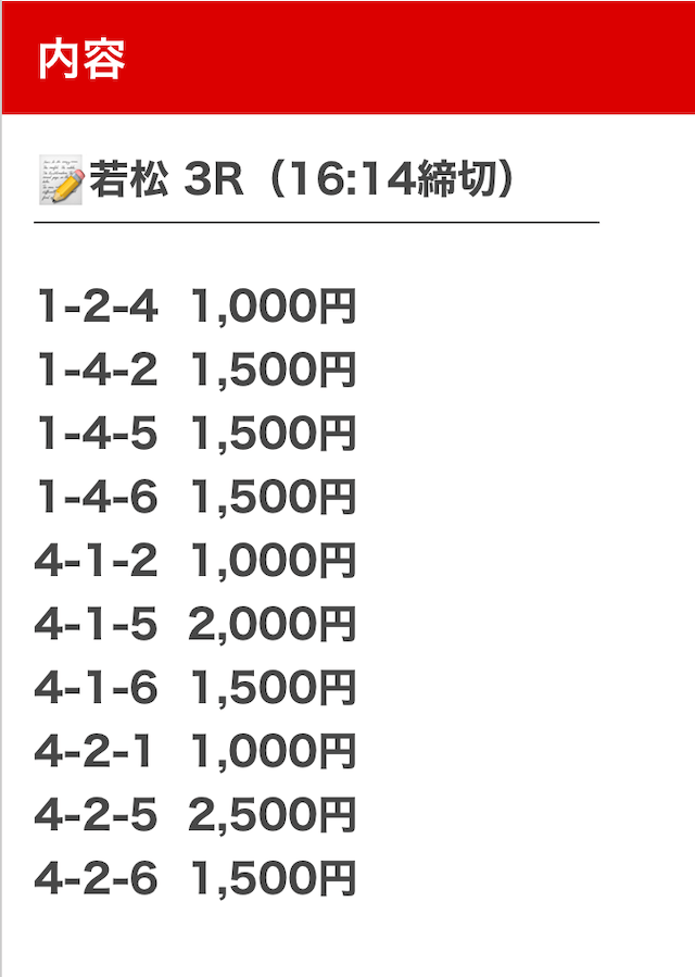 - 2026/01/08的中 無料予想で15,000円獲得2026/01/07的中 無料予想で51,800円獲得2026/01/05的中 無料予想で33,300円獲得2026/01/04的中 無料予想で44,000円獲得2025/12/25的中 無料予想で18,000円獲得2025/12/20的中 無料予想で19,800円獲得2025/12/19的中 無料予想で19,500円獲得2025/12/19的中 無料予想で70,350円獲得2025/12/17的中 無料予想で32,400円獲得2025/12/15的中 無料予想で23,000円獲得