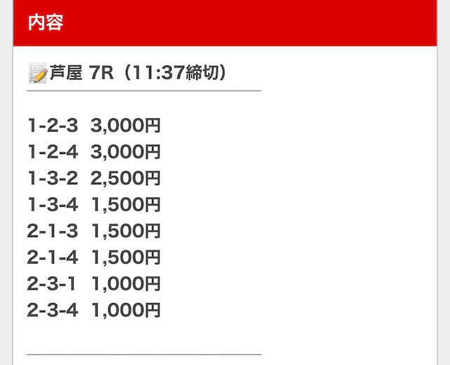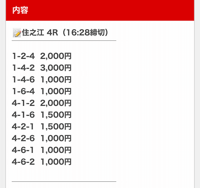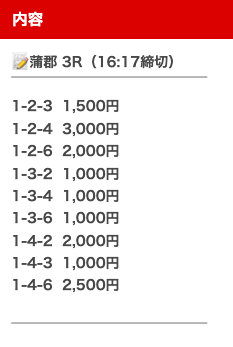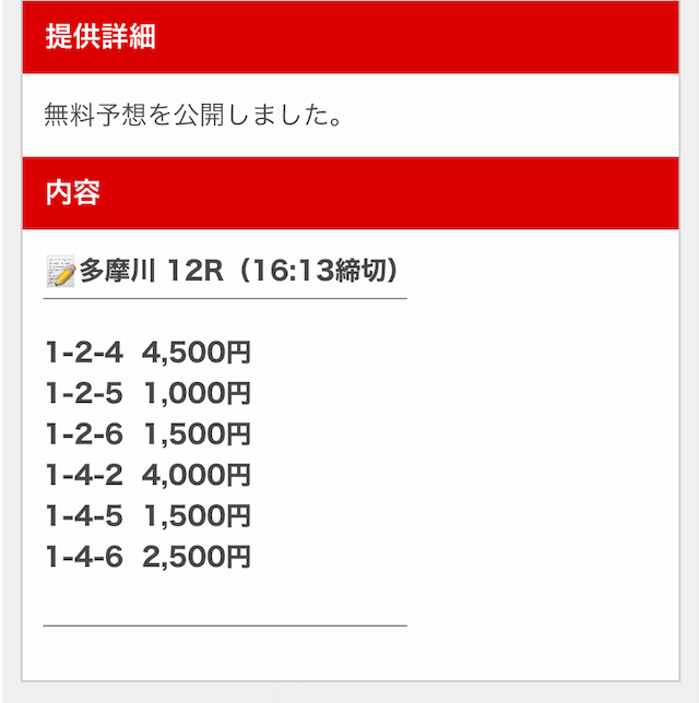 無料予想なのに荒れた決着でもカバーできて、思っていた以上に大きく稼げました。爆発力が強みで、継続的に参加するのが1つ勝つコツかな。