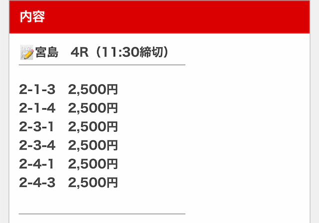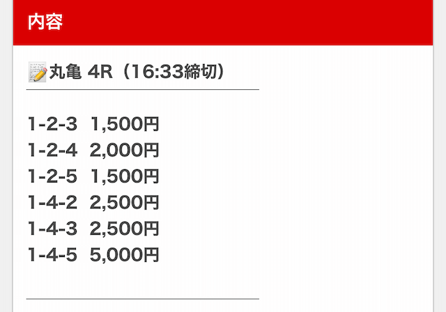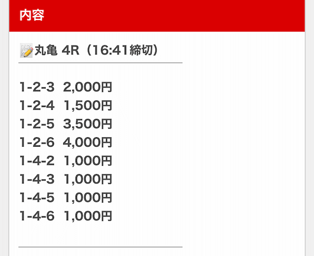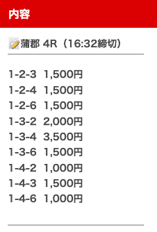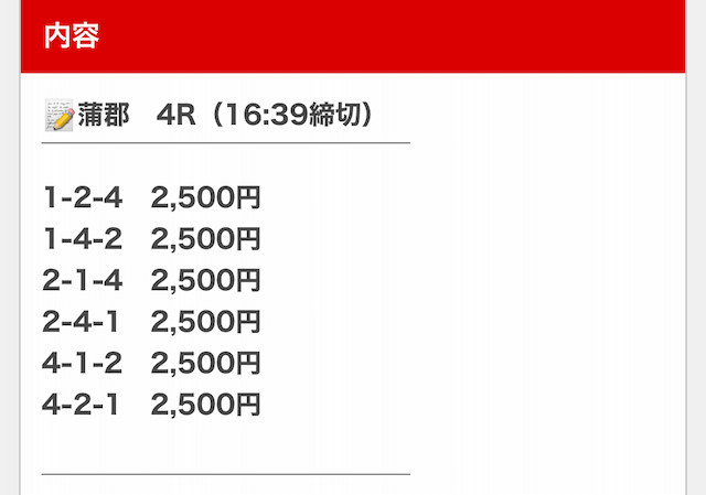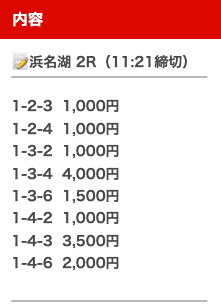 そして、1点1,500円で舟券を購入していたので・・・